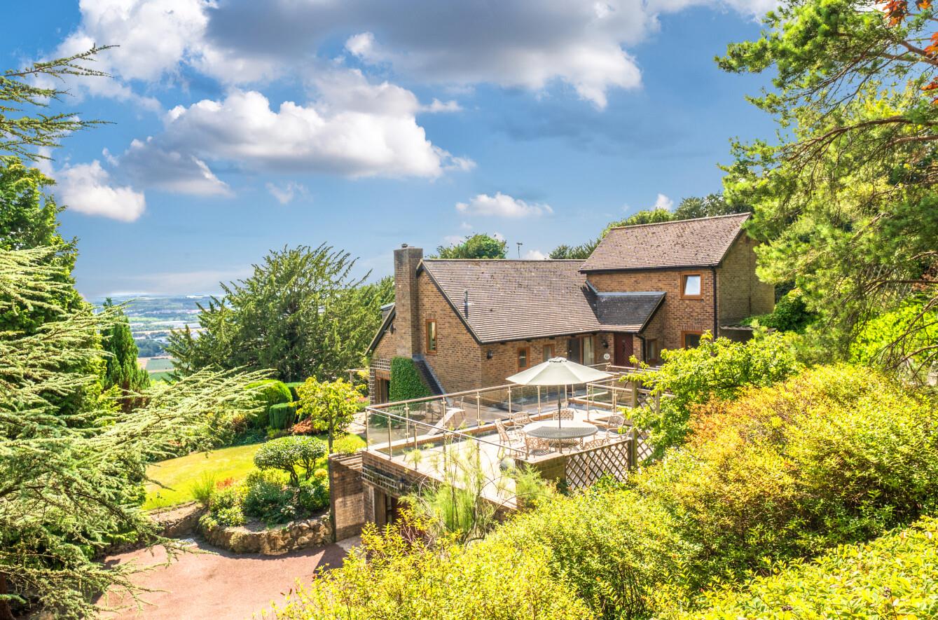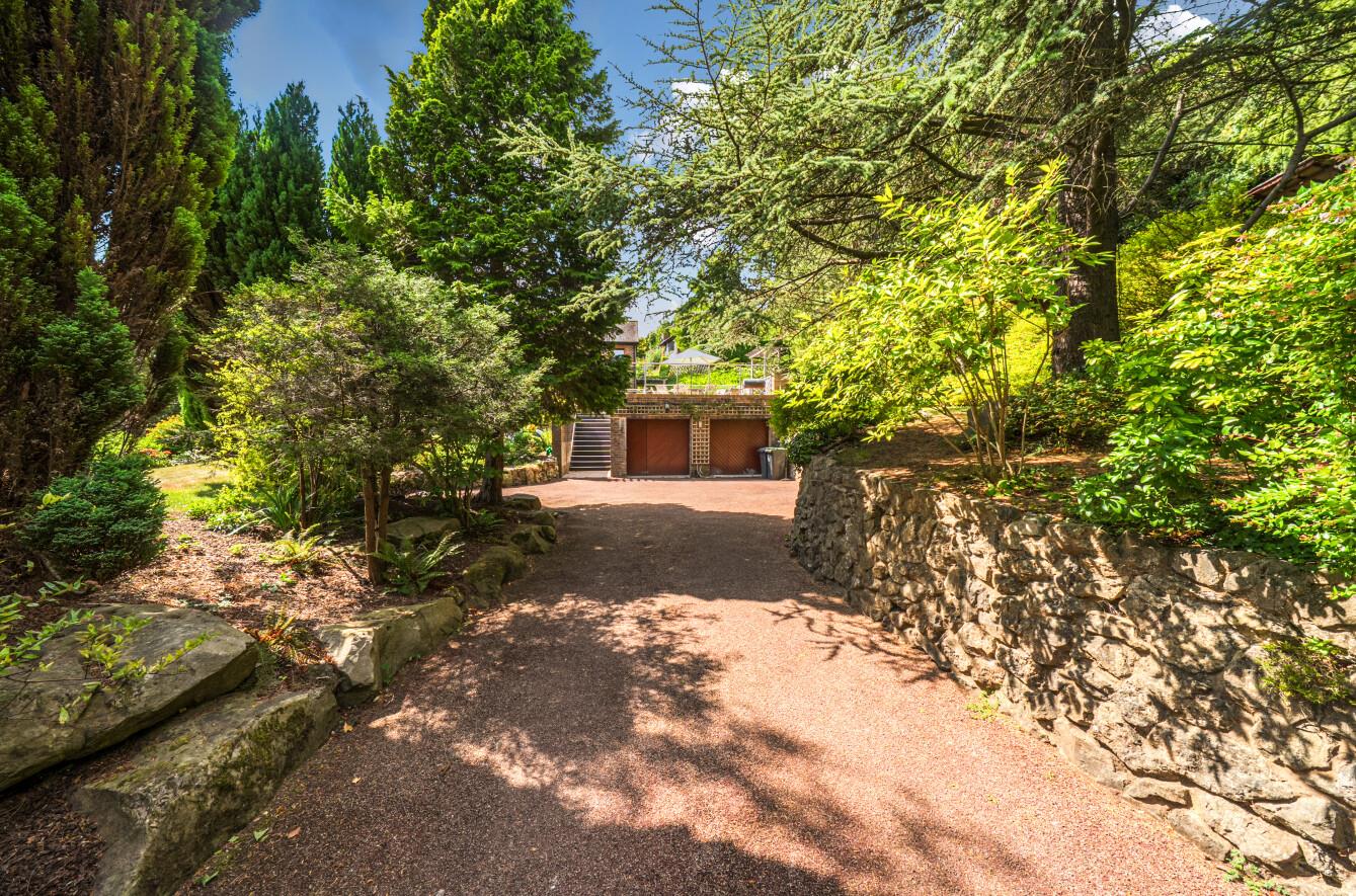 Externally, the property is approached via a private driveway with parking for several vehicles and access to the double garage. Above the garage is a flat roof terrace, offering one of the finest viewpoints on the plot, an ideal setting for evening drinks or even summer entertaining under the stars.