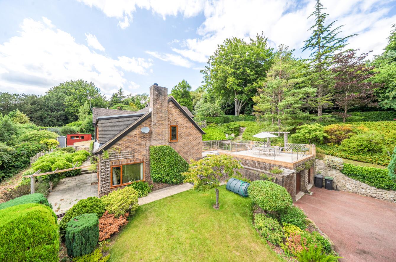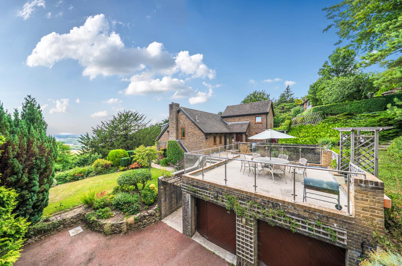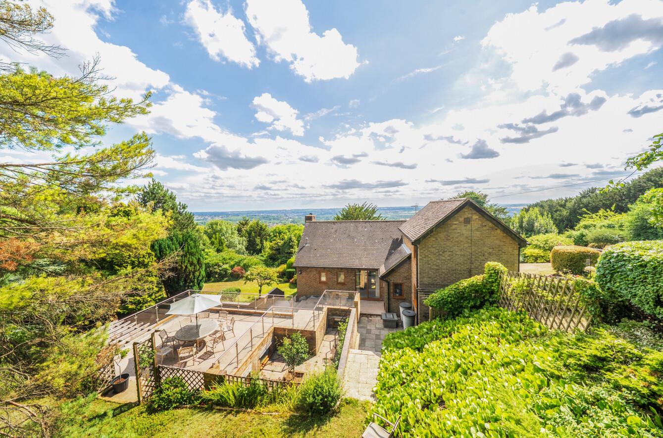 £800,000 - £850,000 Guide Price. Charming character-filled detached home. Set on an elevated 0.65-acre plot. Light-filled kitchen and study area. Spacious reception and dining rooms. Four generously sized bedrooms. Mature wraparound gardens with views. Private driveway with ample parking. Highly Regarded Schooling Options. Excellent Transport Links.