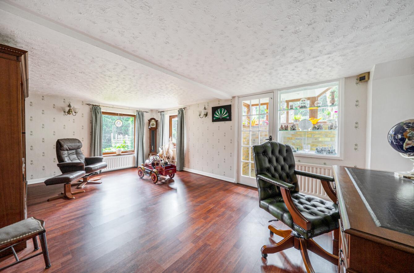 The accommodation is adaptable throughout. On the lower ground floor, a large basement, utility area, boiler room and storage room offer excellent practical space, connecting directly into the generous integral double garage. These spaces present interesting opportunities for workshop, gym or studio use.