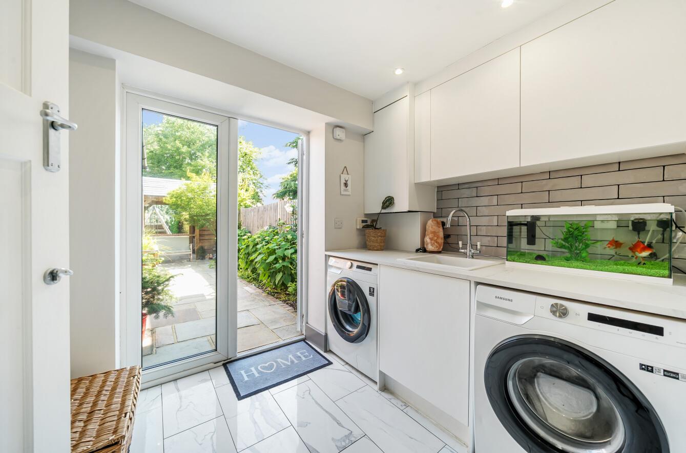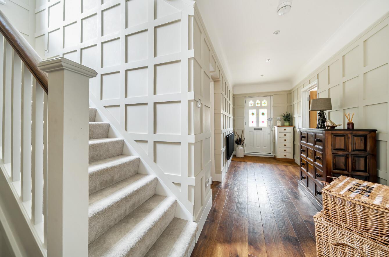 Cleverly designed internal bi-fold doors offer the flexibility to connect the informal and formal reception areas, creating a truly inspired space for entertaining larger gatherings of family and friends, or closing to create more intimate spaces as the occasion demands. This seamless flow from indoor to outdoor space invites al fresco dining and effortless entertaining, whatever the season. Further versatility comes from an additional reception room, currently used as a playroom but easily adaptable as a ground-floor fifth bedroom, home office or snug. Practicality is woven into every corner of the home, with a dedicated utility room, cloakroom, boot room and ample storage completing the ground floor.