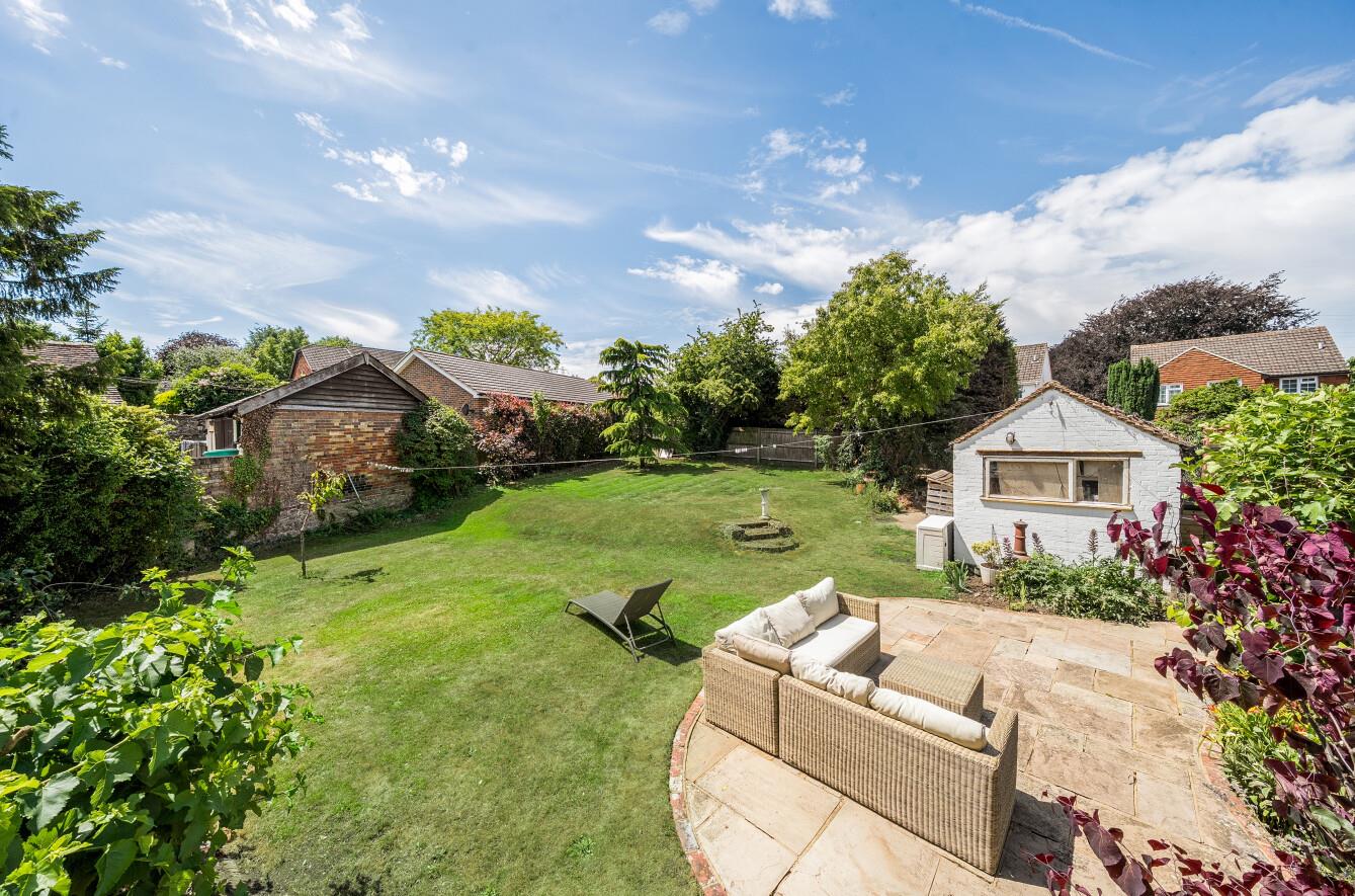 The substantial garden has been thoughtfully landscaped to create a series of inviting spaces for dining, relaxing and play. A wide stone terrace links directly with the kitchen via bifold doors, creating a seamless connection between indoor and outdoor living. Beyond, a mix of lawn, raised beds and mature planting adds colour and interest, with a feature pizza oven providing a focal point for gatherings with friends and family.
