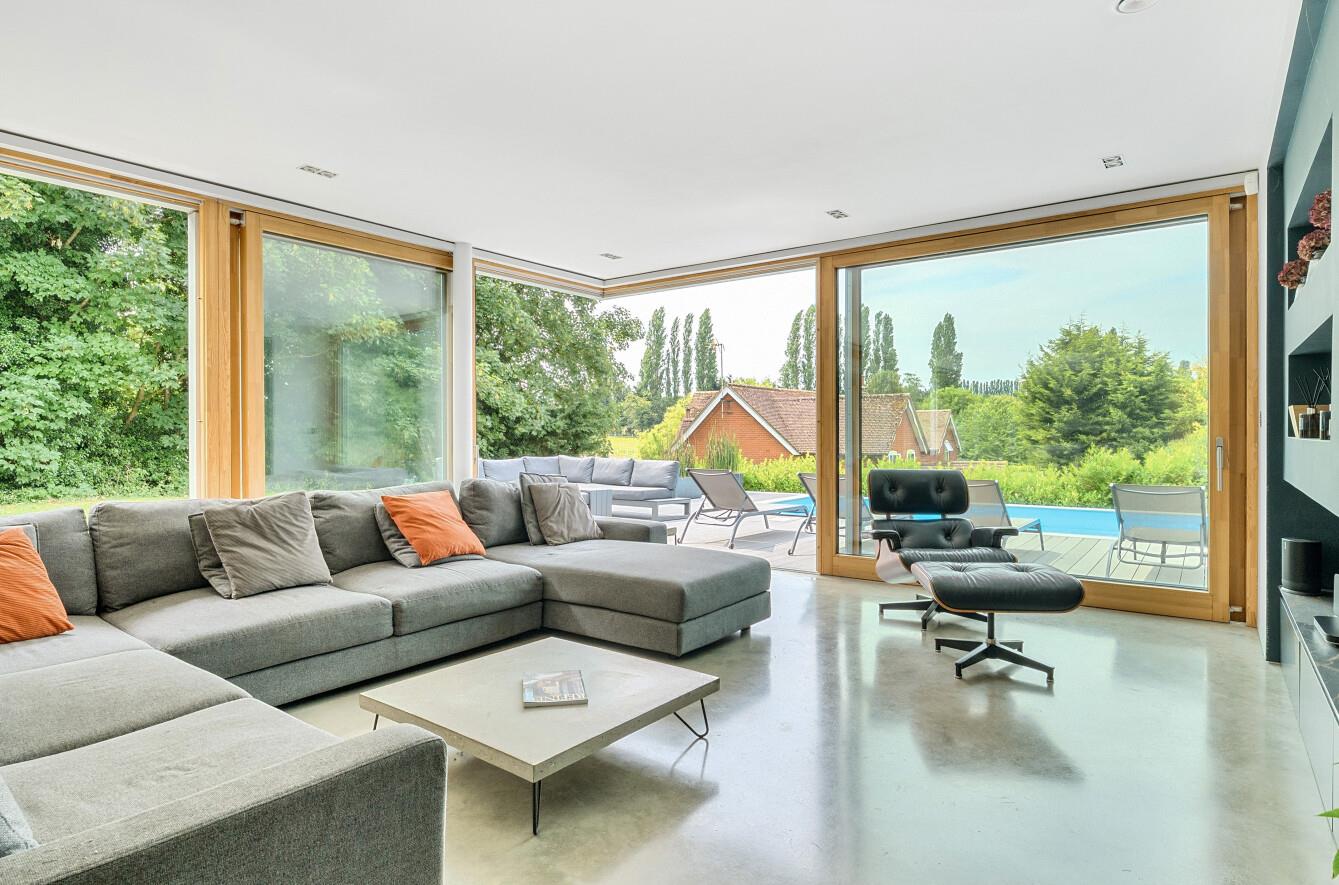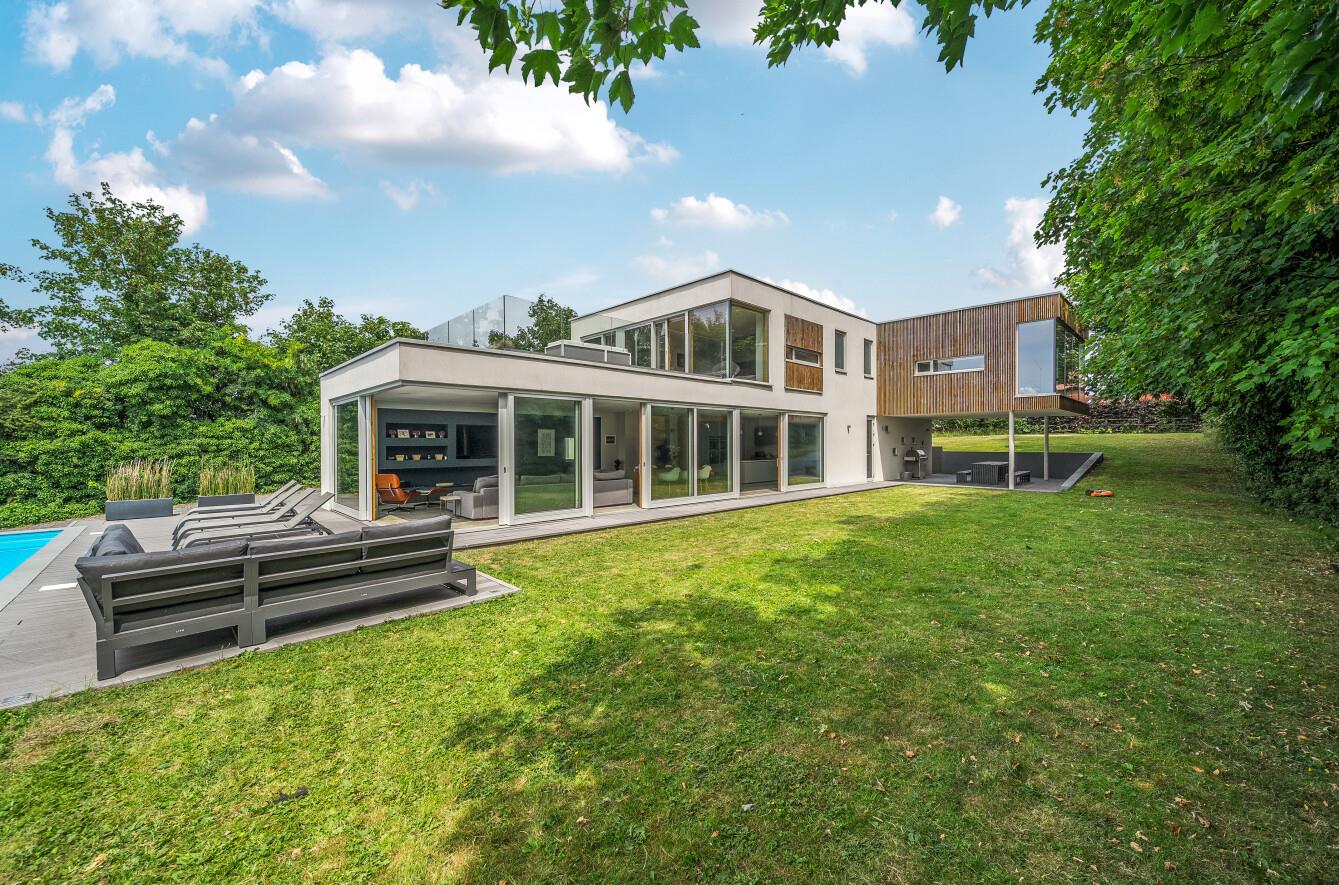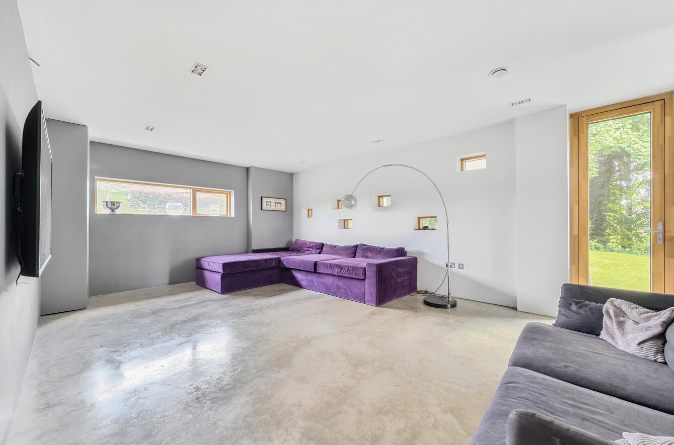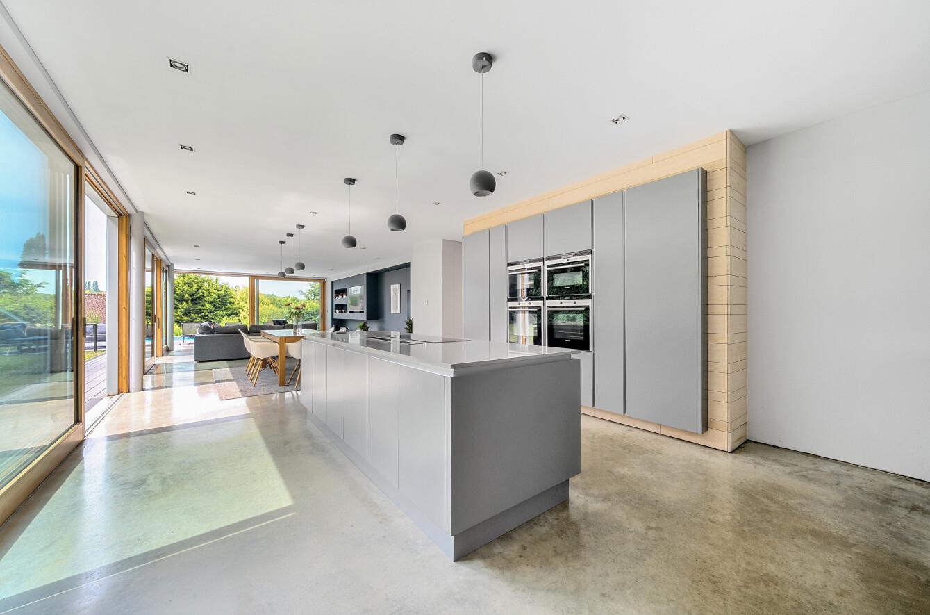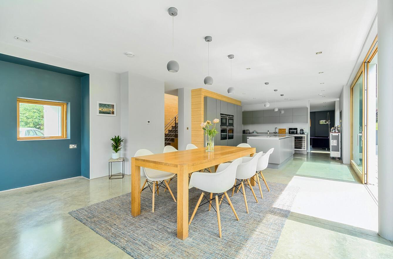 £1,700,000 - £1,800,000 Guide Price. Architect-designed contemporary residence. Open-plan kitchen/dining/family space with sliding glass doors to garden. Separate media/snug room and first-floor study. Underfloor heating (ground floor), Douglas Fir hardwood upstairs. Air source heat pump, MVHR, Biodigester Eco-Drainage. Rako smart lighting, Cat 6 cabling. Triple-glazed aluminium-framed windows with warm spruce pine interiors. 7m X 3.5m swimming pool with porcelain coping and colour-change lighting. Excellent road & rail networks & Highly regarded schooling options.