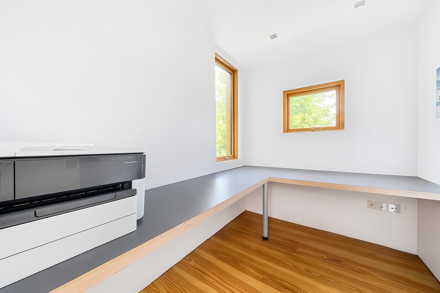 .Triple-glazed aluminium-framed windows with warm spruce pine interiors
