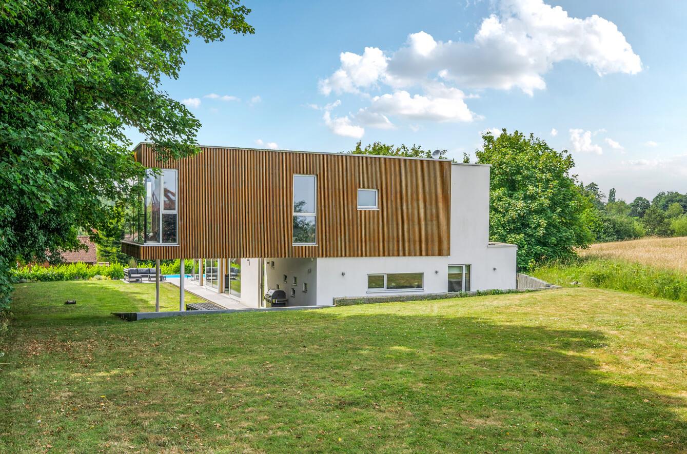 Fine & Country proudly presents this architect-designed contemporary residence of distinction, quietly positioned on the semi-rural fringes of the award-winning market town of West Malling. Striking in both form and finish, this five-bedroom home pairs bold architectural vision with everyday functionality - creating a curated living environment defined by clean lines, natural materials and exceptional light.