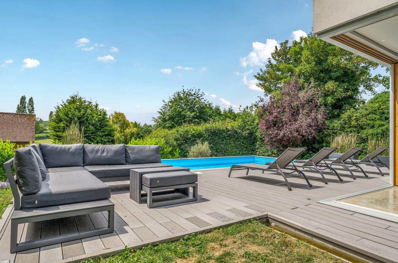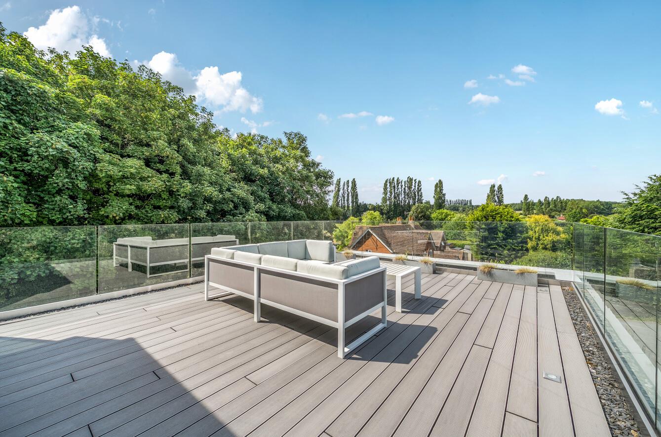 The principal suite is a private sanctuary, with dressing area, indulgent en suite bathroom and direct access to a private roof terrace with sweeping meadow views - an idyllic space to start or end the day. Four further bedrooms and two additional bathrooms ensure comfort and flexibility for family and guests alike.