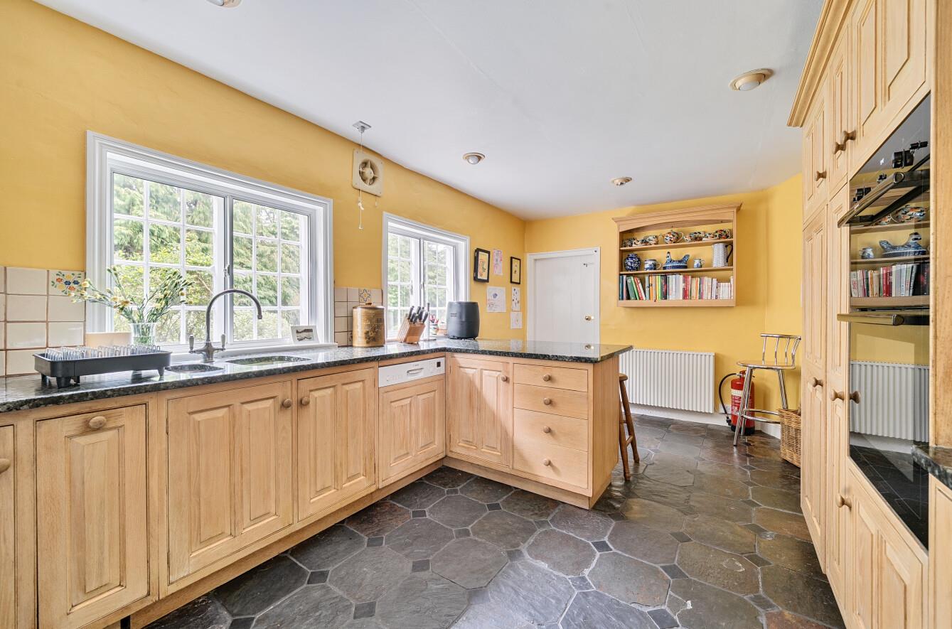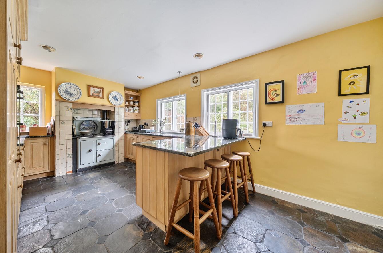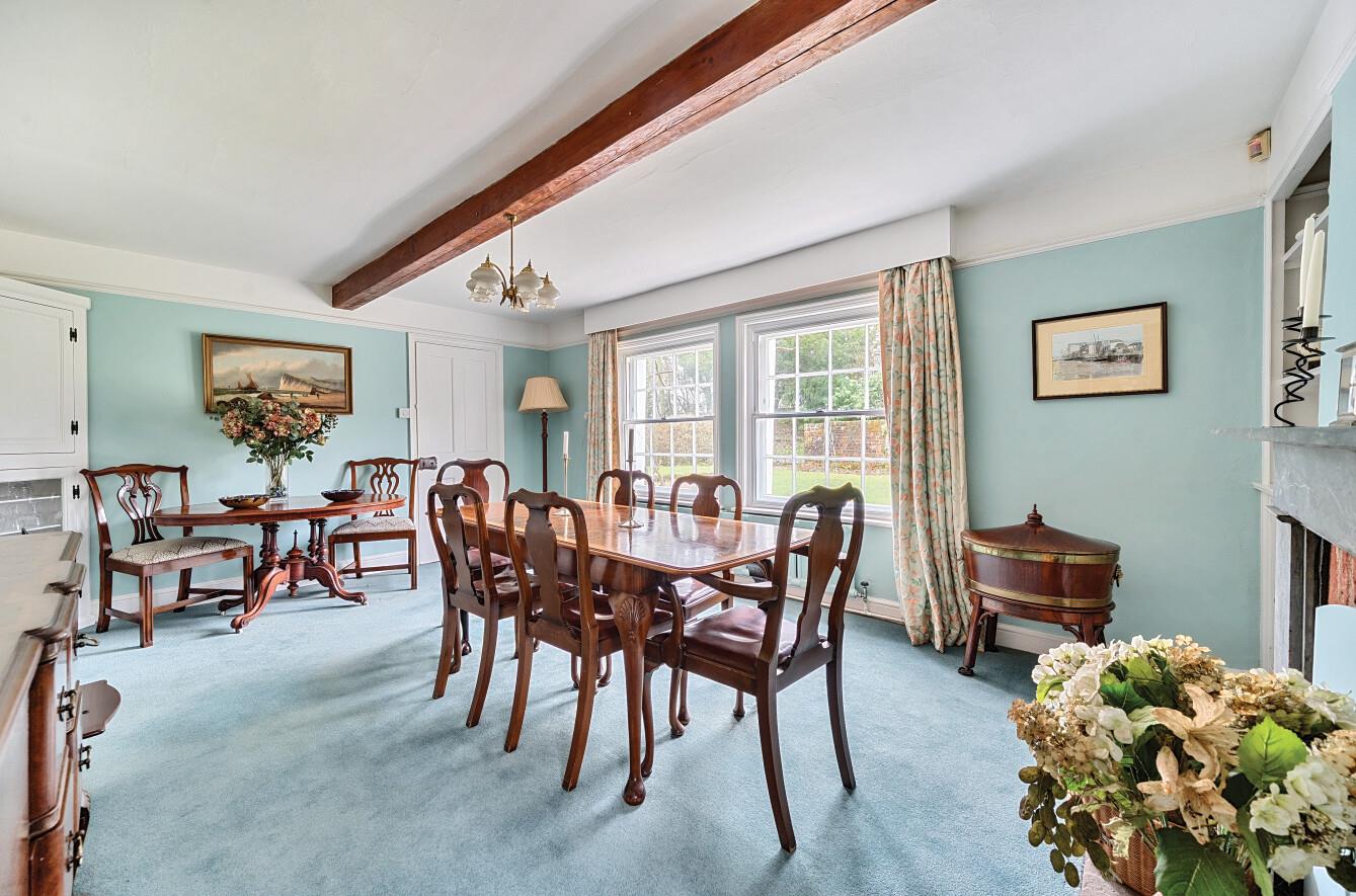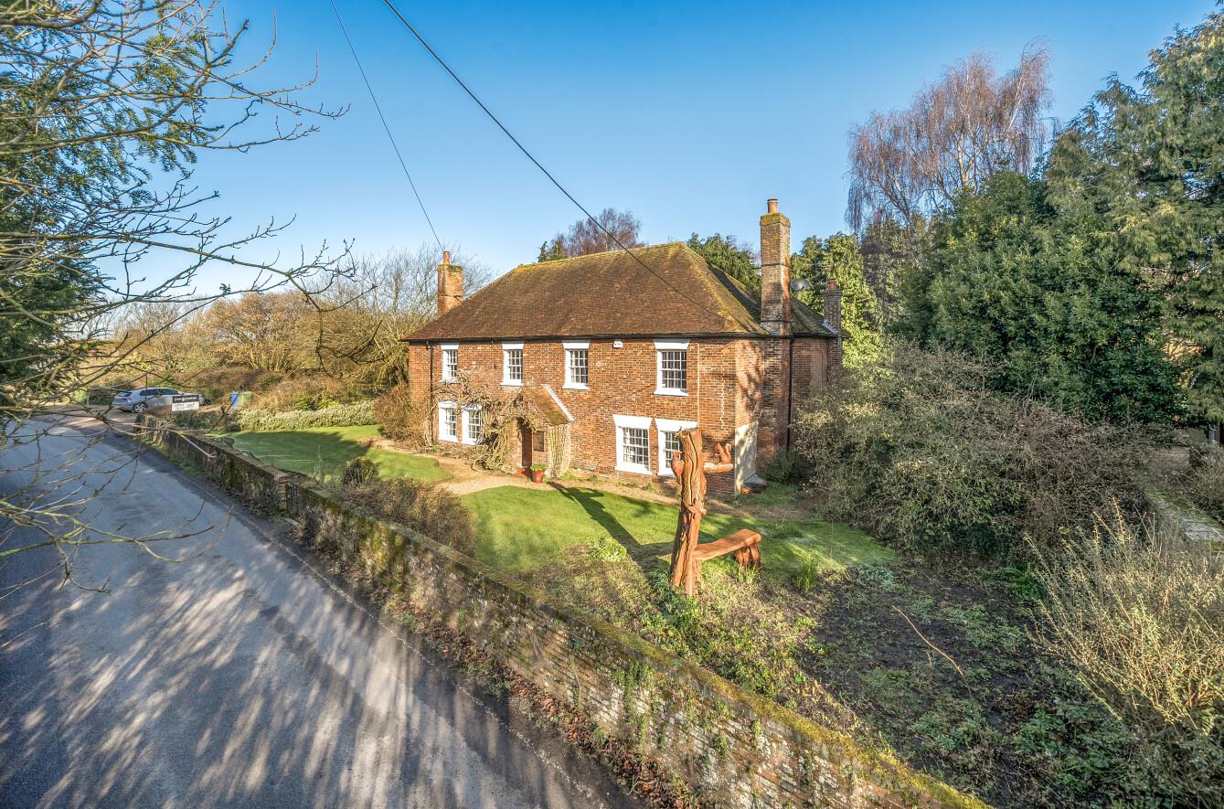 This substantial property boasts traditional Kent peg and slate-tiled elevations, classic sash windows, and undeniable kerb appeal. Occupying a prominent position within the village, the home is accompanied by a double garage, ample parking areas, and an electric vehicle charging point discreetly located at the far side of the generous plot.