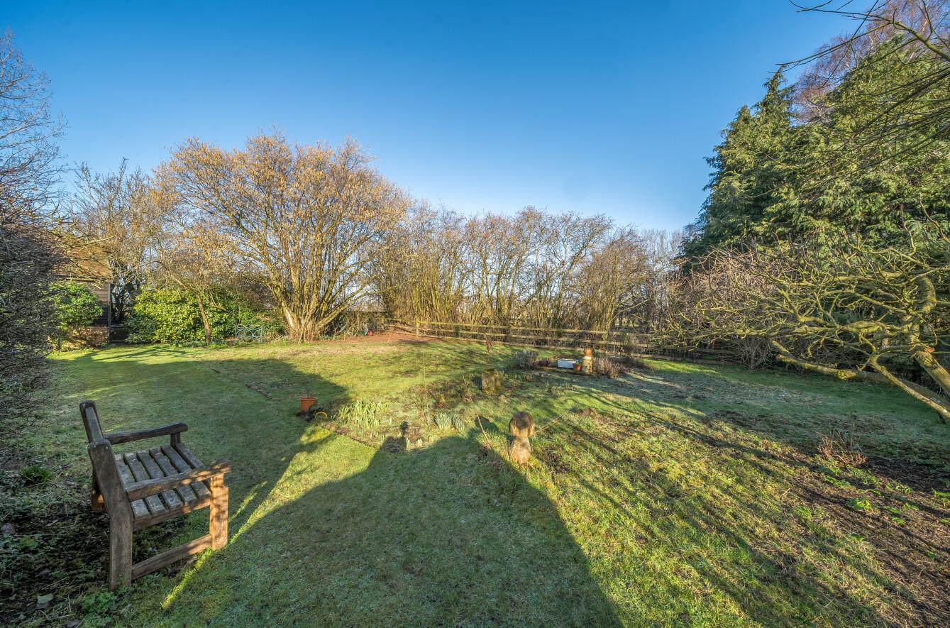 Outside, the property's wildflower gardens offer a true haven of natural beauty. Mature trees and established planting create a secluded sanctuary, screening the lawned rear and side gardens from neighbouring properties. The plot extends to just under half an acre, with mains power supplied to the detached garage building - ideal for workshop use or further development.