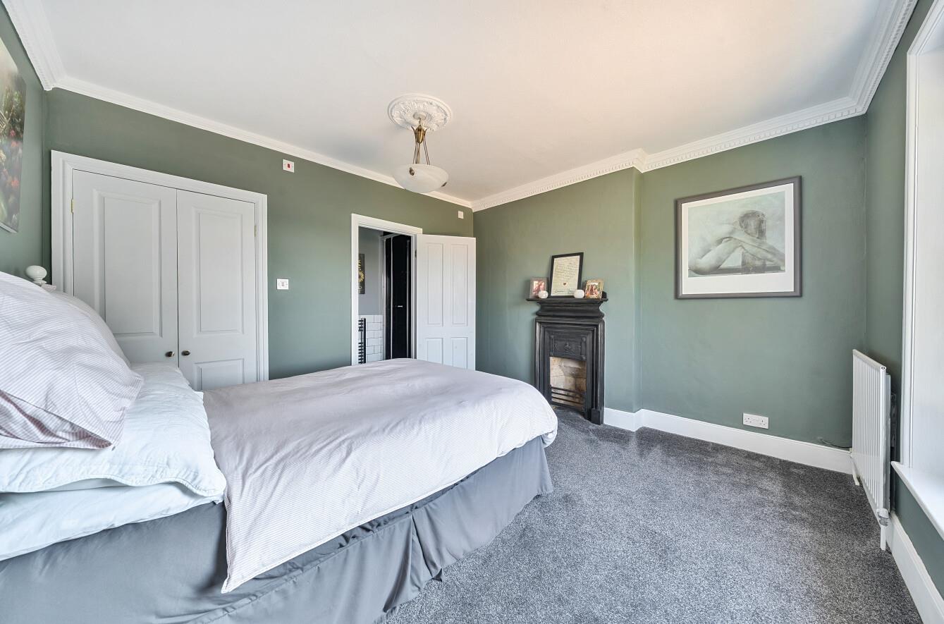Upstairs, the first-floor hosts three wonderfully proportioned bedrooms, including two grand doubles at the front, each with elegant fireplaces, bespoke wardrobes and luxuriously appointed en suite shower rooms. A family bathroom and separate shower room add flexibility for modern family life. The top floor offers two further double bedrooms, ideal for guests, older children, or home working.
