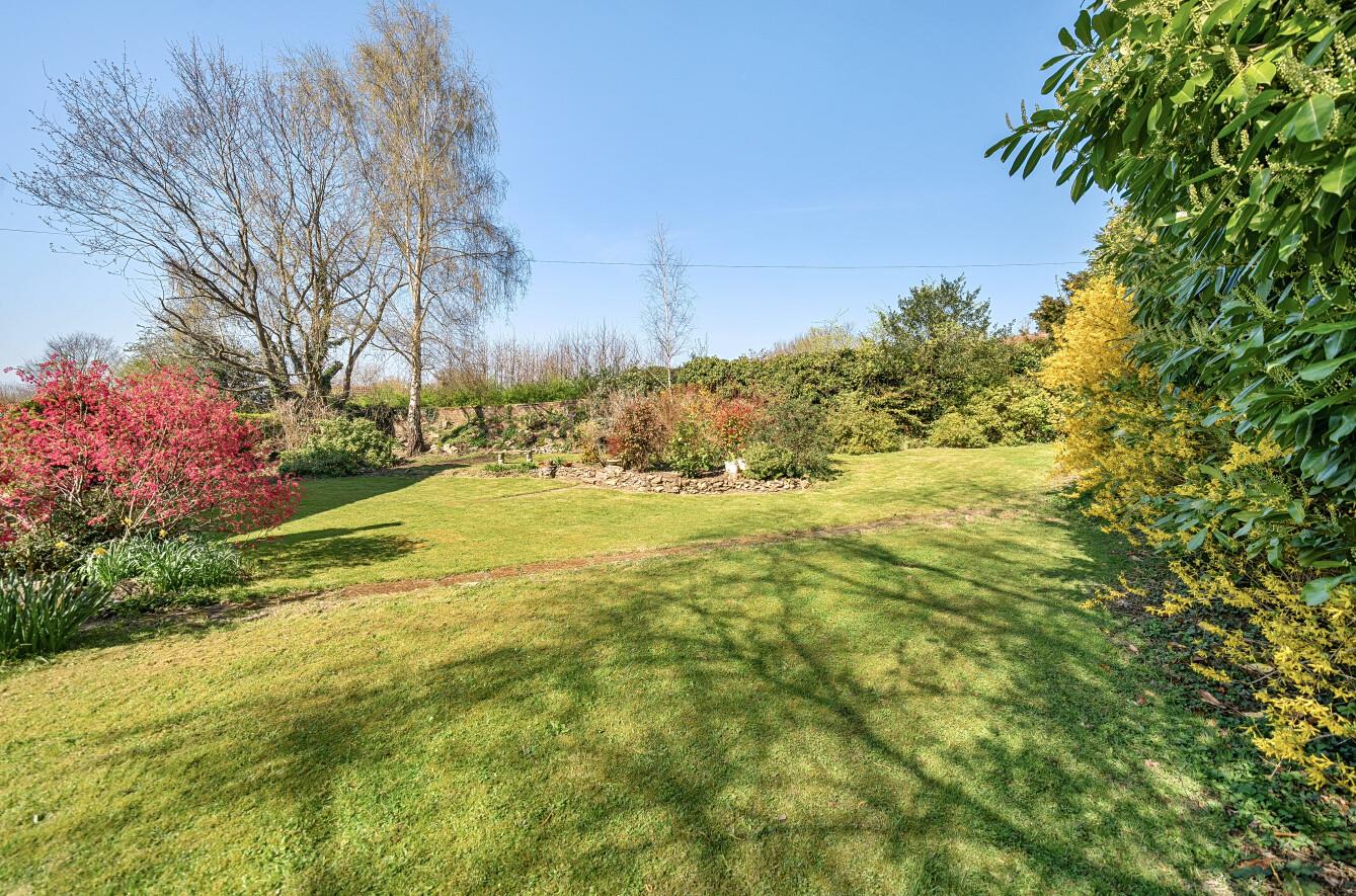 Outside, the sense of privacy is exceptional. The property is hidden behind a tall, characterful wall and approached via wrought iron gates leading to a spacious gravel driveway and a detached double garage. Mature trees and thoughtfully landscaped gardens surround the home, creating a serene, green oasis that feels a world away from the hustle of daily life.