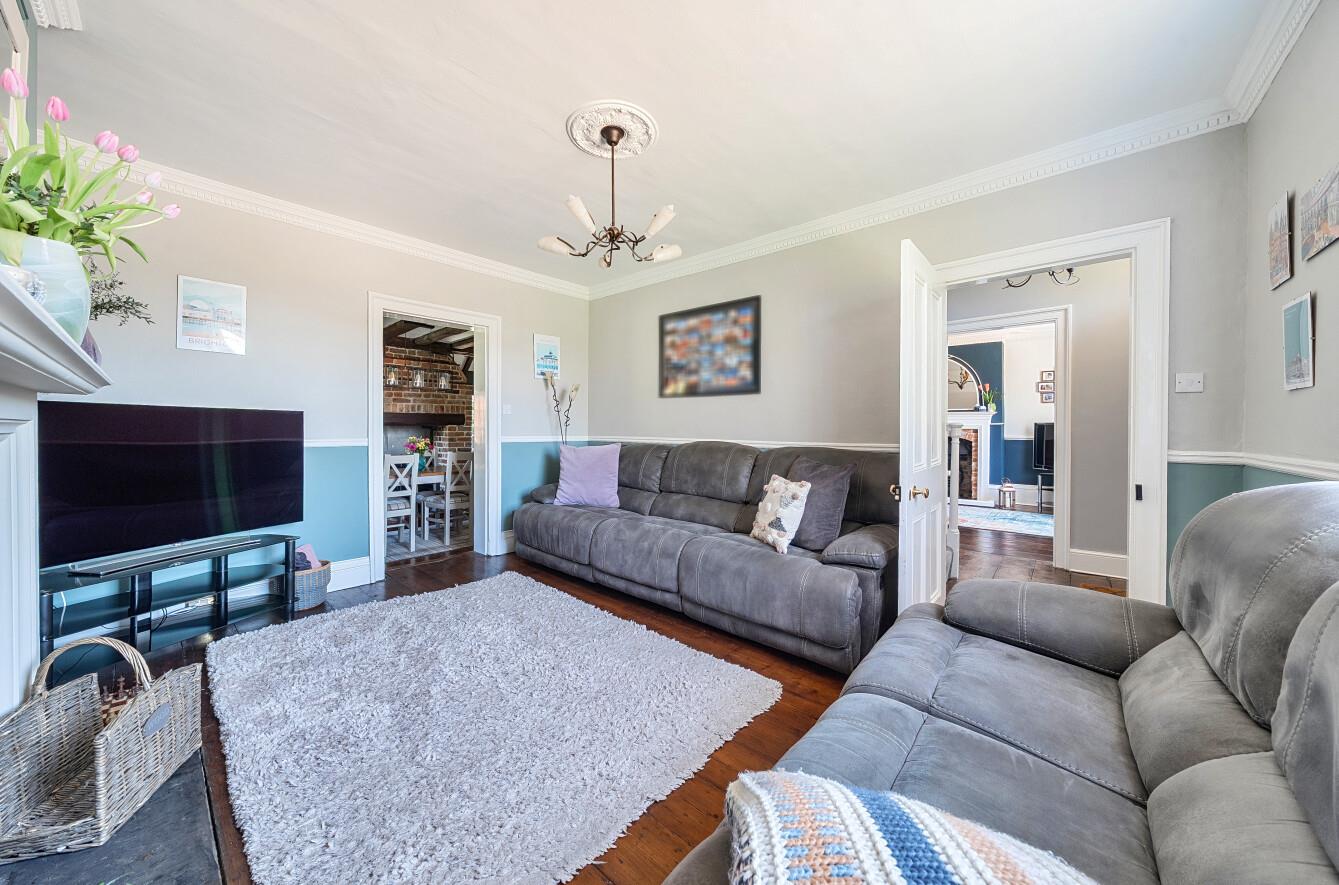 From the moment you enter, there's a sense of grace and history. Two elegant reception rooms sit to either side of the entrance hall, each with their own distinct personality. One is refined and formal, complete with wood panelling and a feature fireplace housing a multi-fuel stove; the other is relaxed and inviting, centred around a beautiful, exposed brick hearth, ideal for quiet evenings or entertaining guests.
