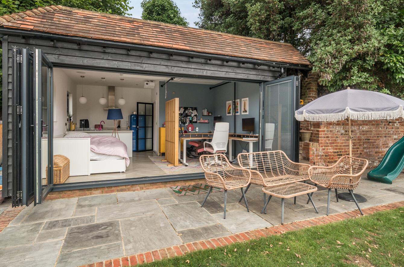 Nestled within the grounds, a beautifully finished studio annex provides a self-contained retreat, perfect for working from home, creative pursuits, therapeutic use or occasional guests. Its versatility adds yet another dimension to this thoughtfully designed home.