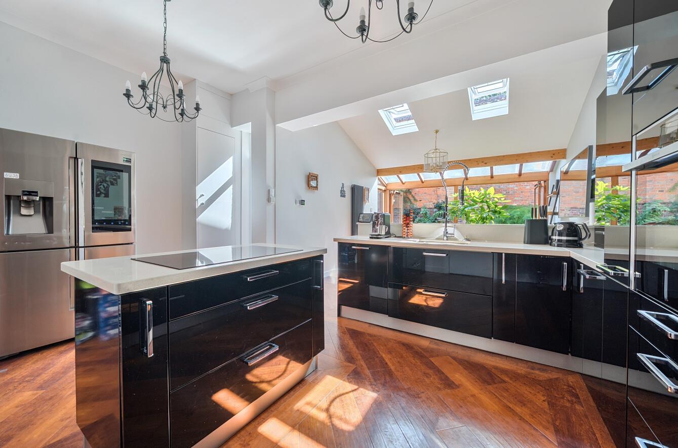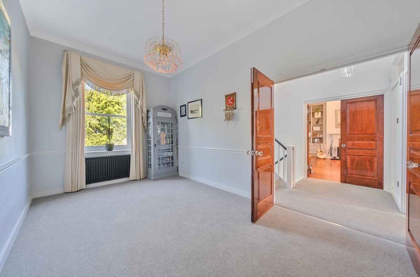 A versatile reception room sits alongside, easily adaptable as a formal dining space, home office, or even a sixth bedroom, providing flexibility to suit every household need.