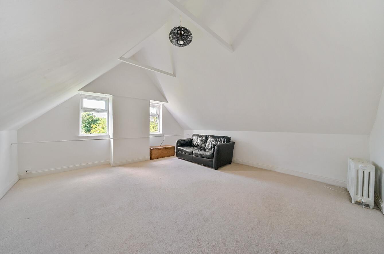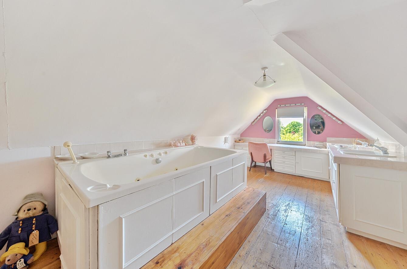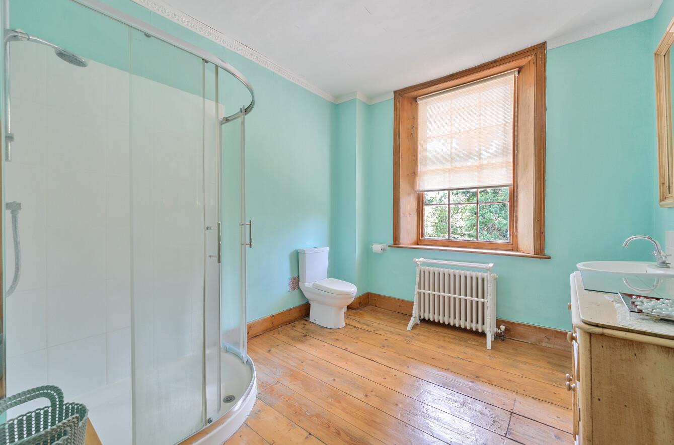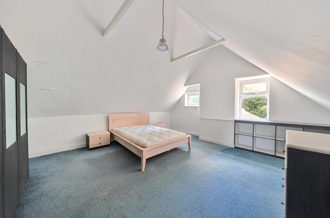 A striking staircase leads to the split level first floor. The principal bedroom suite is particularly special, with a private staircase leading to a large en suite bathroom and a dressing room complete with extensive fitted storage and eaves access. Five further bedrooms, a family bathroom, and a shower room complete the first floor, while the second floor offers two additional bedrooms, one currently used as a sitting room, alongside a bathroom and kitchenette, making this an ideal retreat for teenagers or long-term guests.