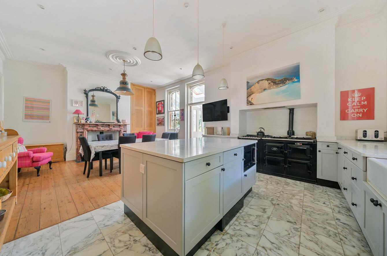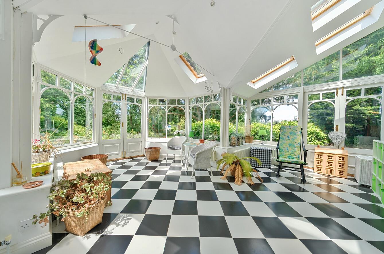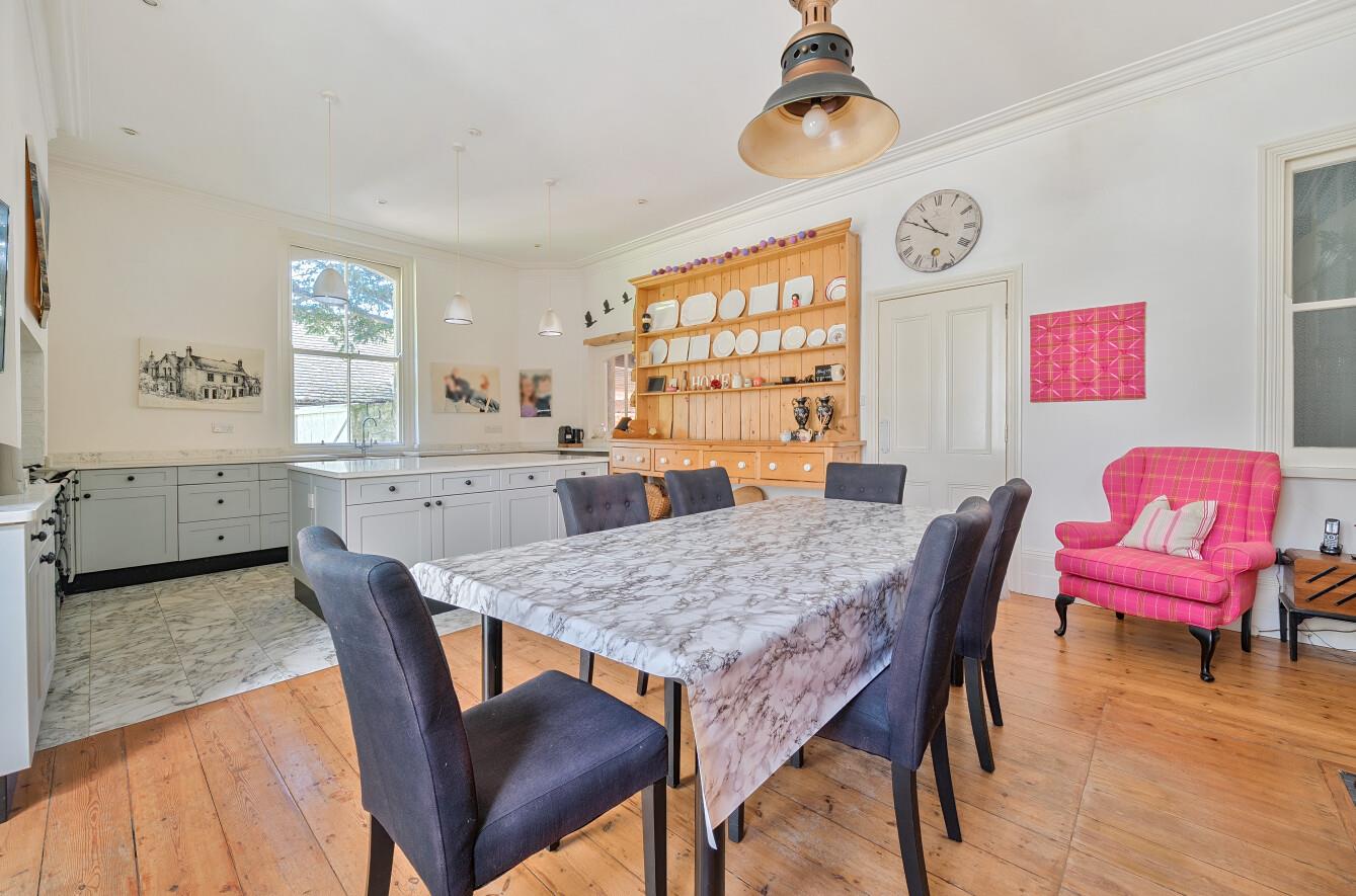 Throughout the home, original features add warmth and character: high ceilings, sash windows, ornate fireplaces in both marble and timber, and polished wooden floors. There are five principal reception rooms, each offering its own ambiance. The drawing room and study enjoy a southerly aspect, with an open fireplace and inset gas fire respectively. A generous billiard room provides the perfect space for entertaining, while the dining, sitting room, with French doors leading to the garden, was once the home's original kitchen. To the west, a spacious conservatory opens into the kitchen and captures the afternoon sun beautifully.