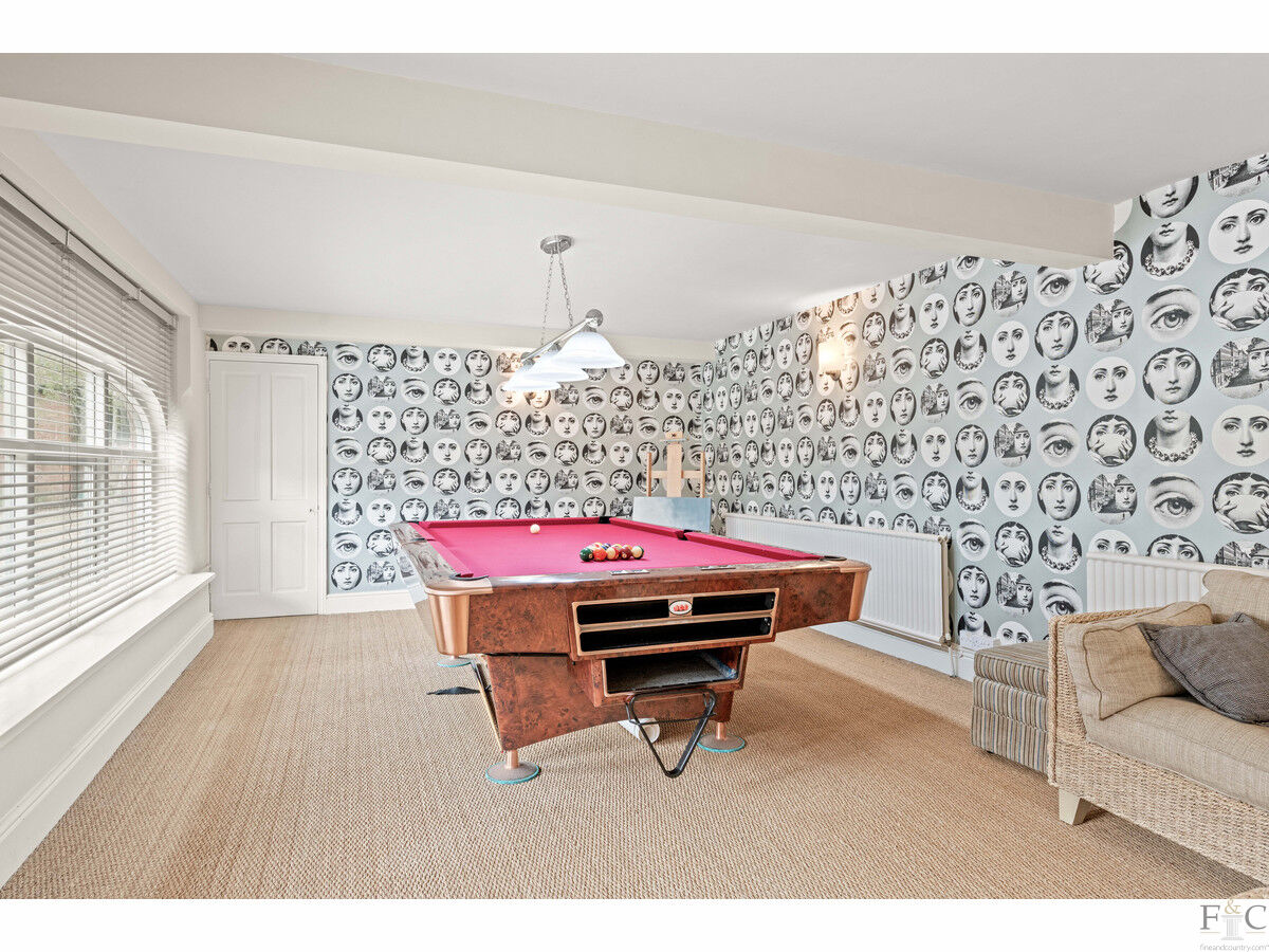 - Sitting room, dining room, study, garden room, and games room with full size pool table