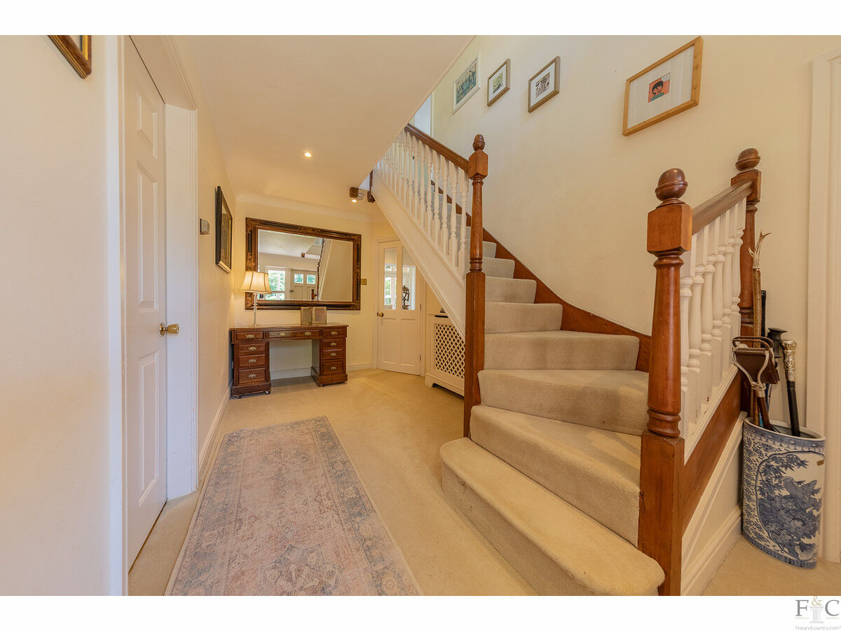 The entrance hall is wide and bright, setting the tone for the space to come. Immediately off the hall is a flexible reception room that is equally suited as a playroom, cosy snug, or a private home office, ideal for remote working.