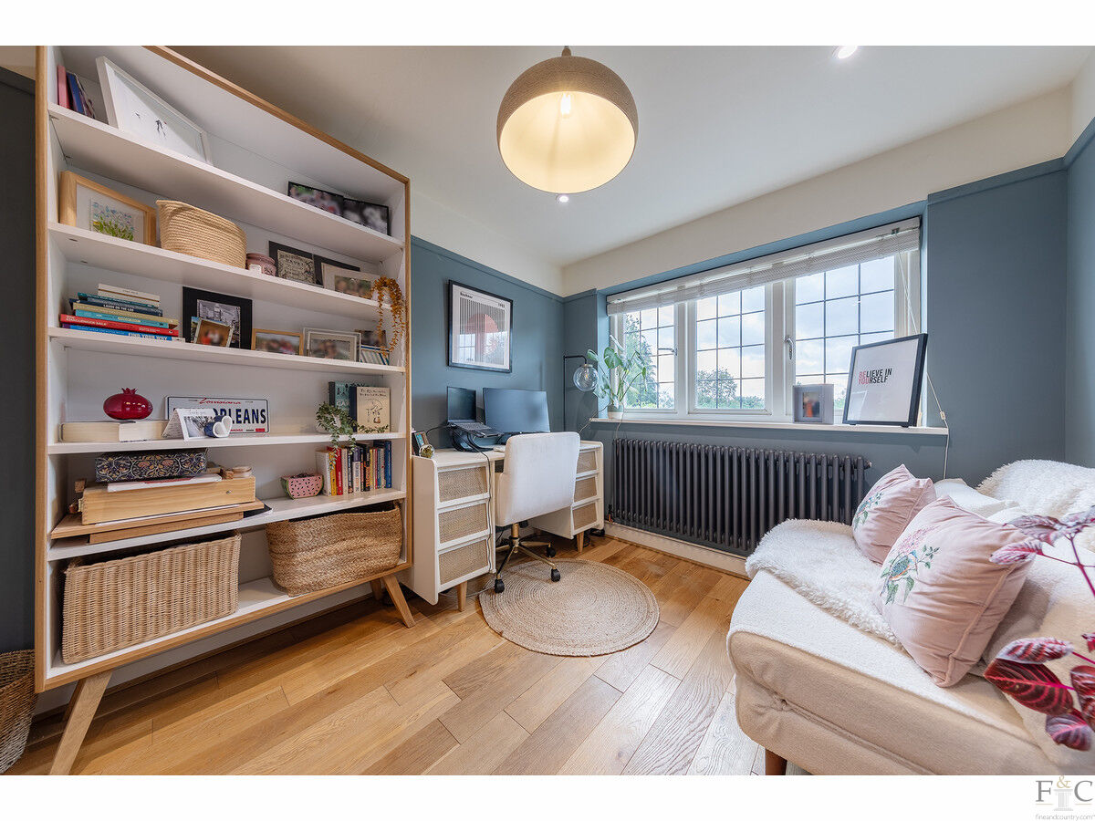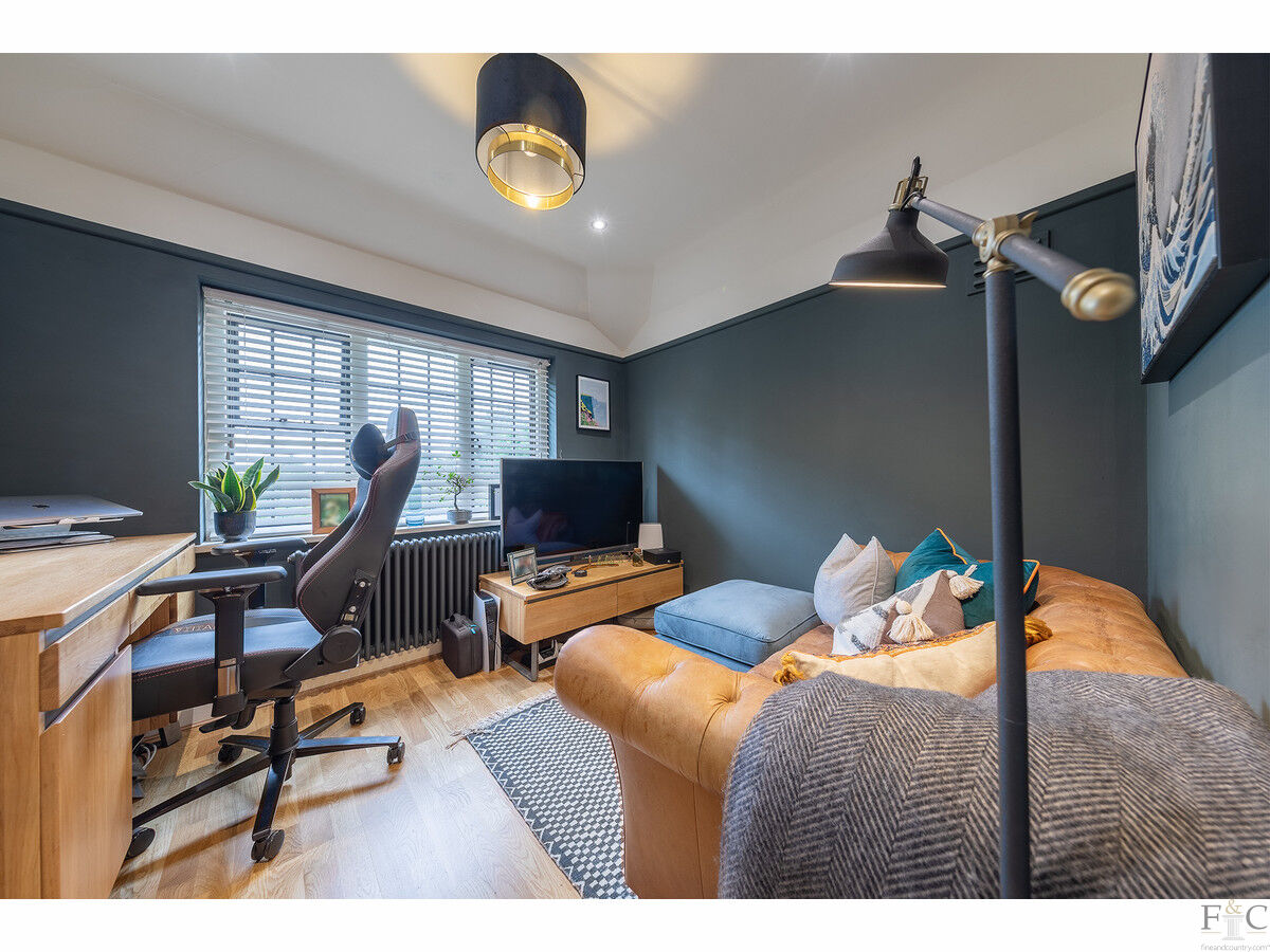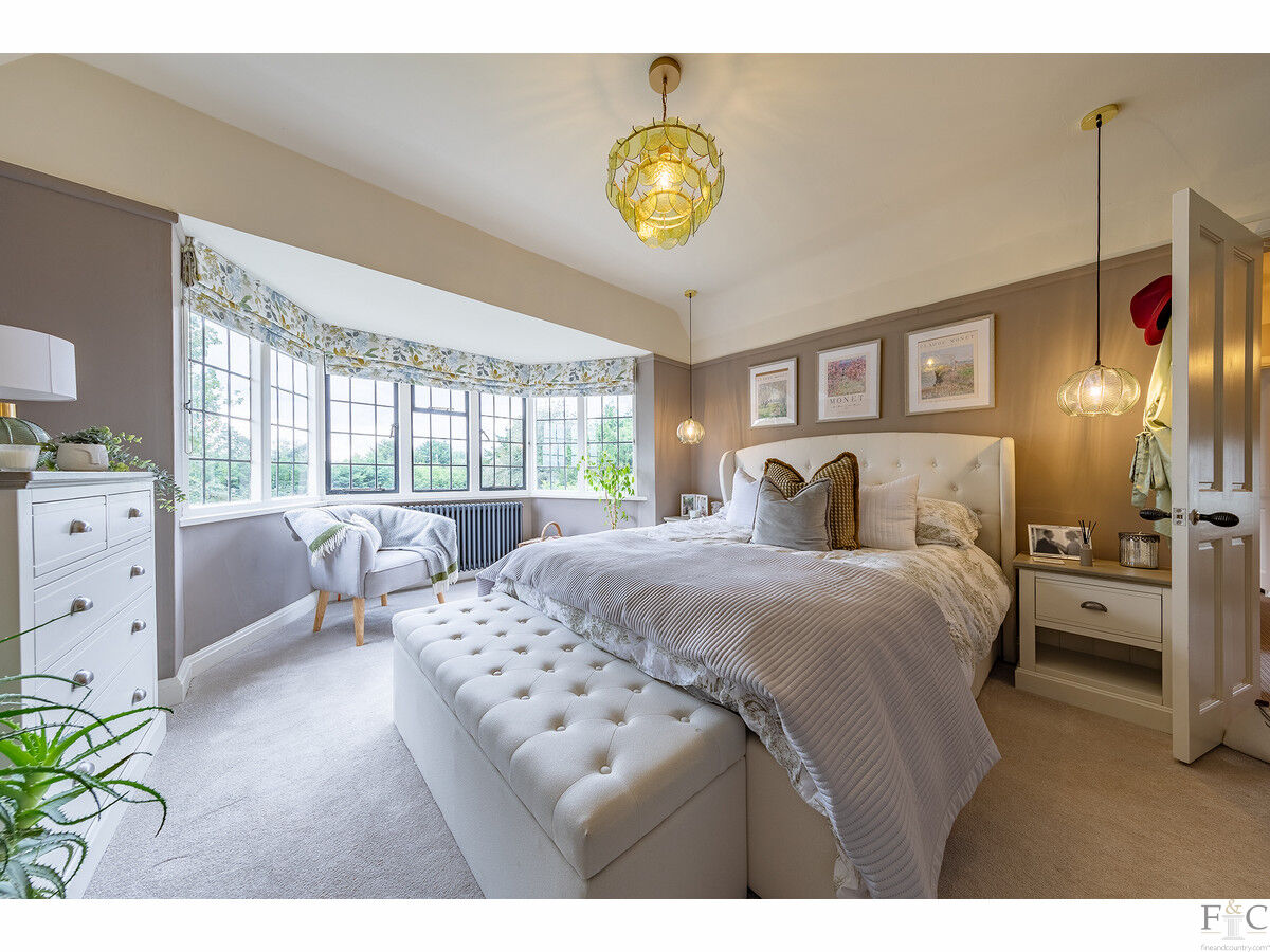 To the first floor, there are four generously sized bedrooms. The two largest rooms both feature bay windows, with the master bedroom offering a luxurious en-suite bathroom and the guest bedroom benefiting from an en-suite shower room. The remaining two bedrooms share a well-appointed family bathroom.