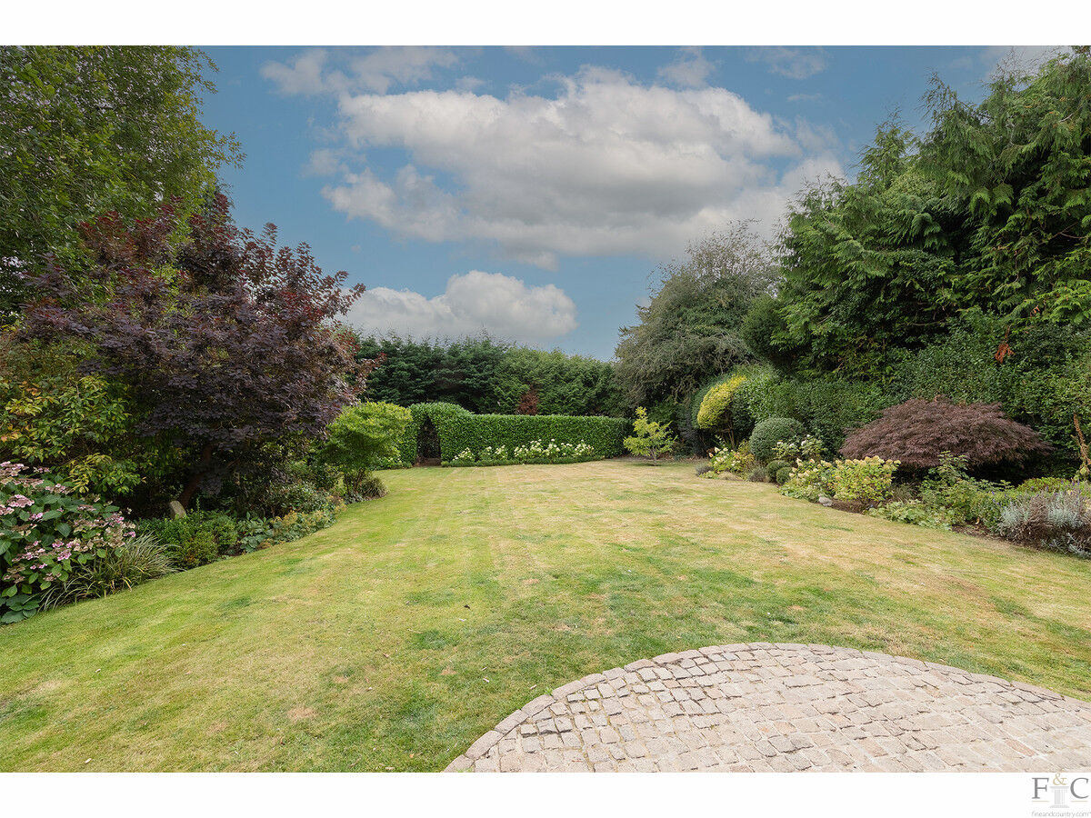 The property occupies a mature plot that offers a good degree of privacy. The front driveway is edged with mature hedging and accessed via timber gates and provides off road parking for several cars and leads to a single garage. To the rear is a delightful southwest facing rear garden that presents an excellent space for entertaining family and friends. A large, paved terrace perfect for alfresco dining can be accessed from both the open plan living dining kitchen, and lounge, and is perfectly positioned to enjoy the afternoon and evening sun. Steps lead from the terrace to a meticulous lawned garden with planted borders and mature trees. There is also a wooded area that presents a shielded storage area, and has potential to become a vegetable garden, or child’s play area.