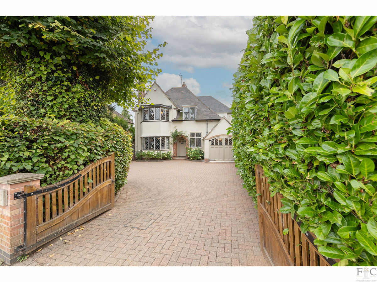 The property is set back from the road and accessed through double timber gates, screened by mature hedging that offers a high level of privacy. A spacious block-paved driveway provides off-road parking for several vehicles and leads to a single attached garage, currently being used as a gym.