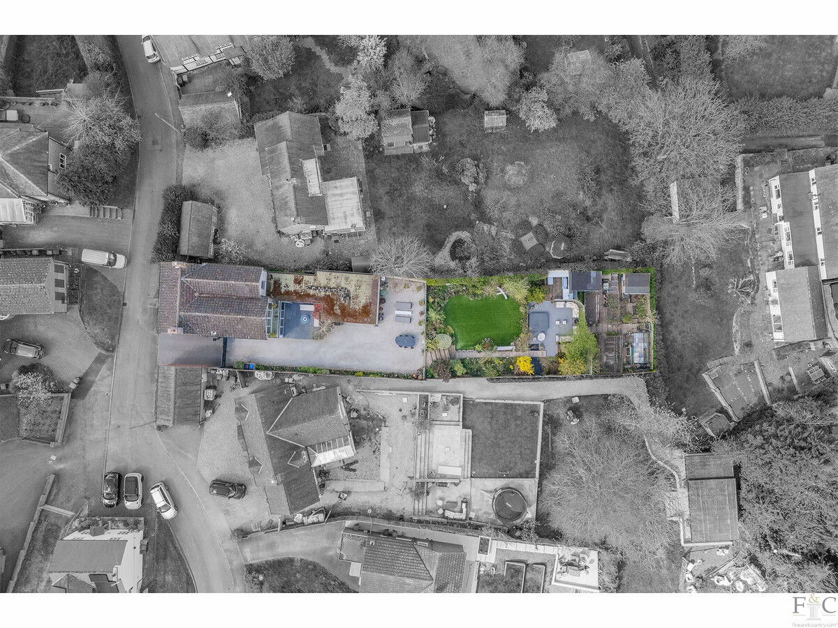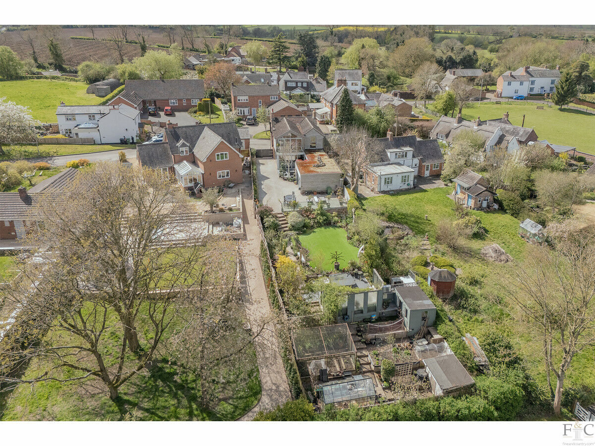 The garden is another beautiful asset of Yew Tree House. From the roadside it would be difficult to appreciate the length of its plot or the variation of the landscaping included. It is well stocked with herbaceous borders and specimen trees, including a white mulberry, laburnum and many acers. An artificial turf lawn, patios and walk ways have been incorporated, and a bridge leads over a natural pond to the largest southwest facing patio and barbecue area. The dining area looks back to views of the village and there is a hot tub. Beyond this partitioned space, a shaded garden leads to a further vegetable garden with raised beds, a fruit cage, cold frames, a green house and sheds.