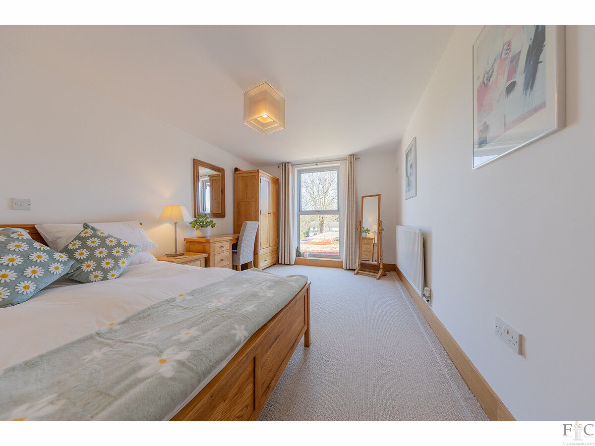 The bedroom across the landing shares similar views, while bedroom three is to the front. This double aspect room looks to the village green, renowned for its preservation as an original feature of the village landscape and protected by residential ownership to remain unchanged. The remaining fourth bedroom is fitted with integral wardrobes and has an ensuite consisting of walk in shower, toilet and vanity unit.