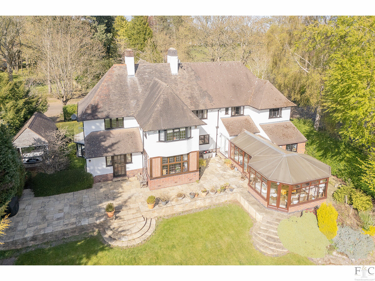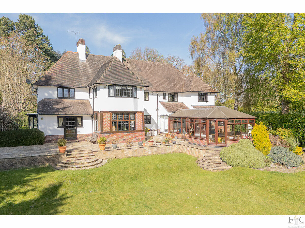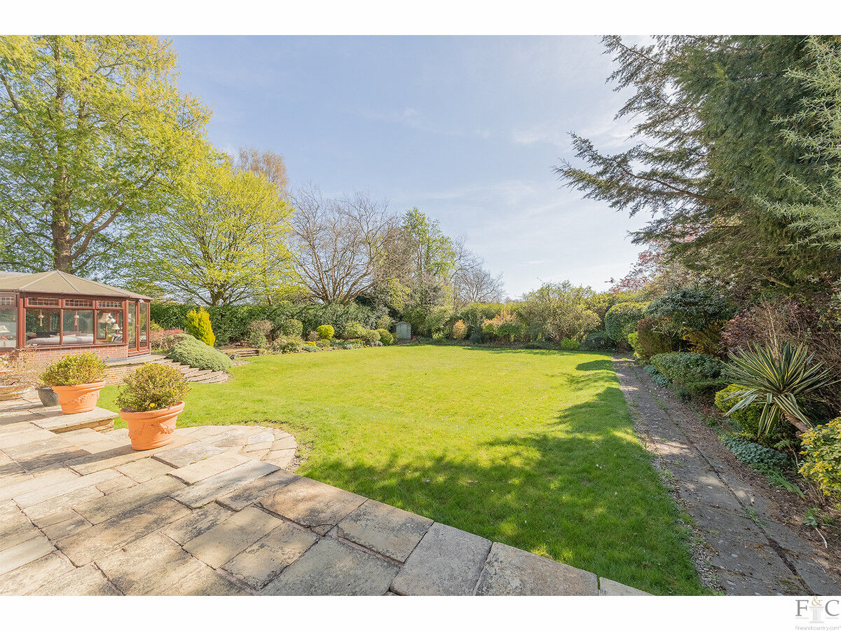 Outdoors, this home continues to impress. The gated block-paved driveway offers plentiful parking and access to both a tandem garage and a secure car port. To the rear, the south-facing garden is a sanctuary of greenery and light, featuring a raised stone terrace, perfect for al fresco dining, and gently stepped lawns enclosed by mature hedgerows and trees, offering complete privacy.