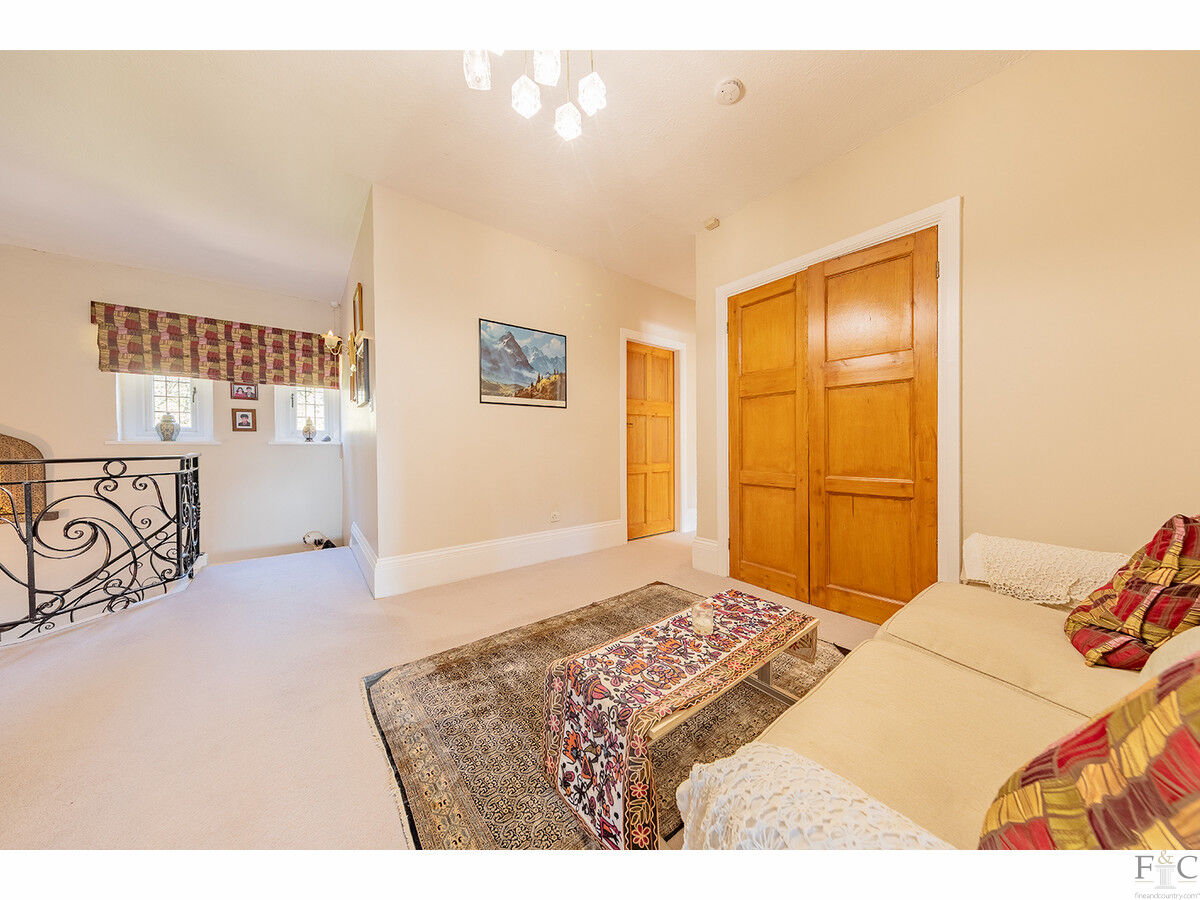 Ascending the return staircase, framed by an original cast-iron balustrade, you’ll reach a broad and open landing — a tranquil reading nook leading to four generously proportioned bedrooms.