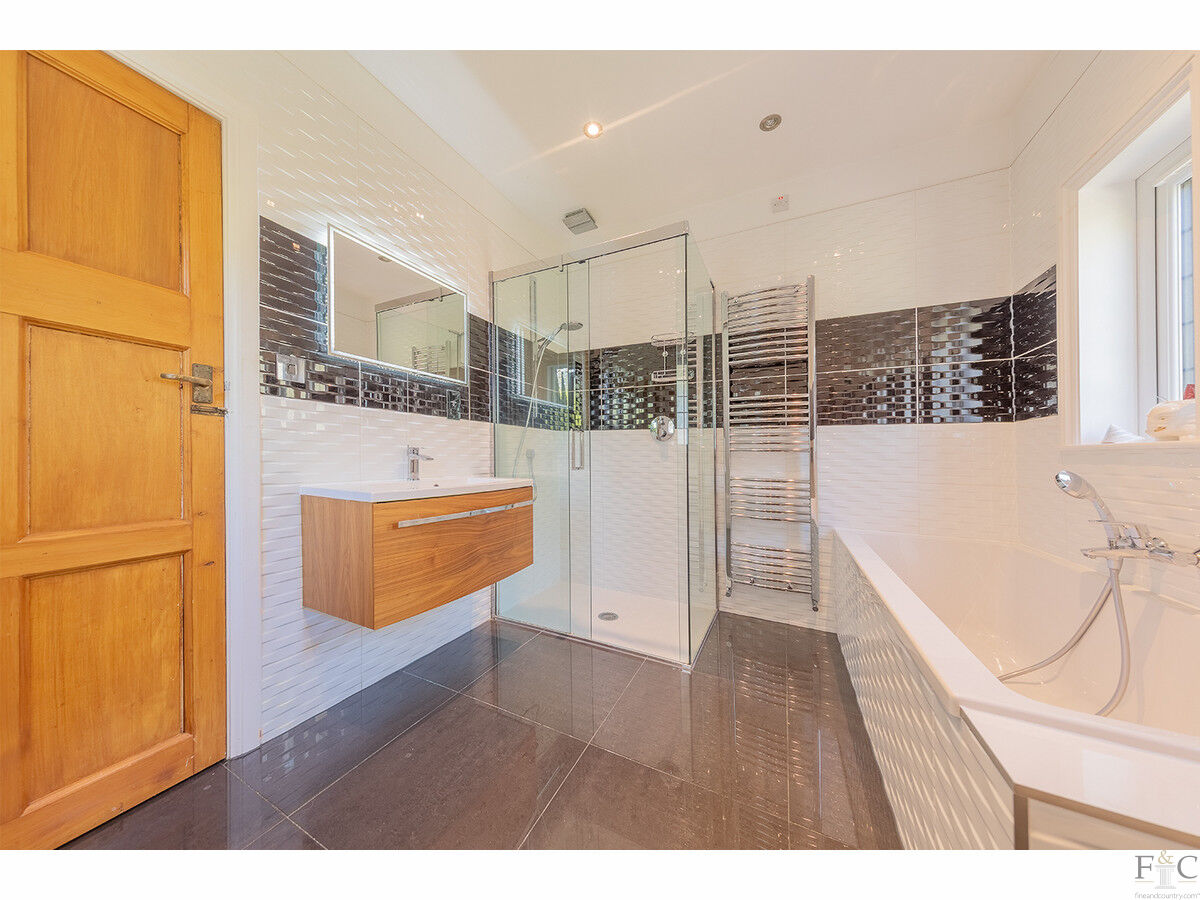 - Four double bedrooms, three bathrooms, plus dressing room and study
