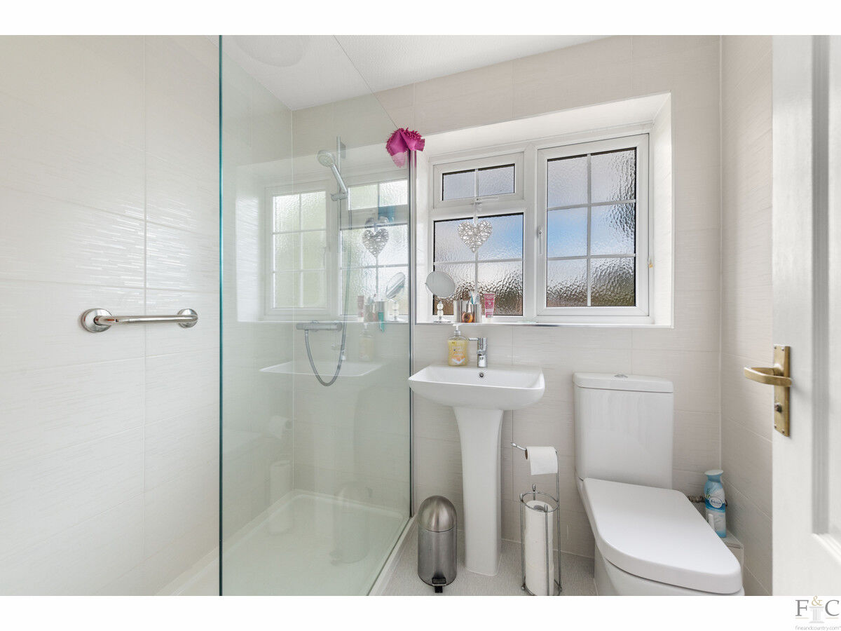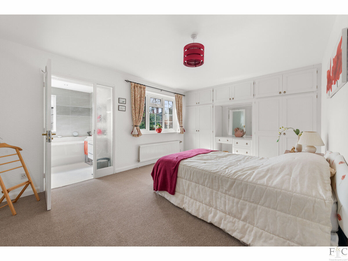 The relaxed feel of this lovely house is now continued as you ascend the stairs. From the carpeted landing, there is access to the prime suite with its own bathroom en-suite, three further bedrooms and a family shower room. The bedrooms are all carpeted, provide integral fitted wardrobes and storage cupboards. The rooms have been well maintained, offering bare painted walls for ease of decoration. Additionally, the two bedrooms next to the shower room have their own vanity units.