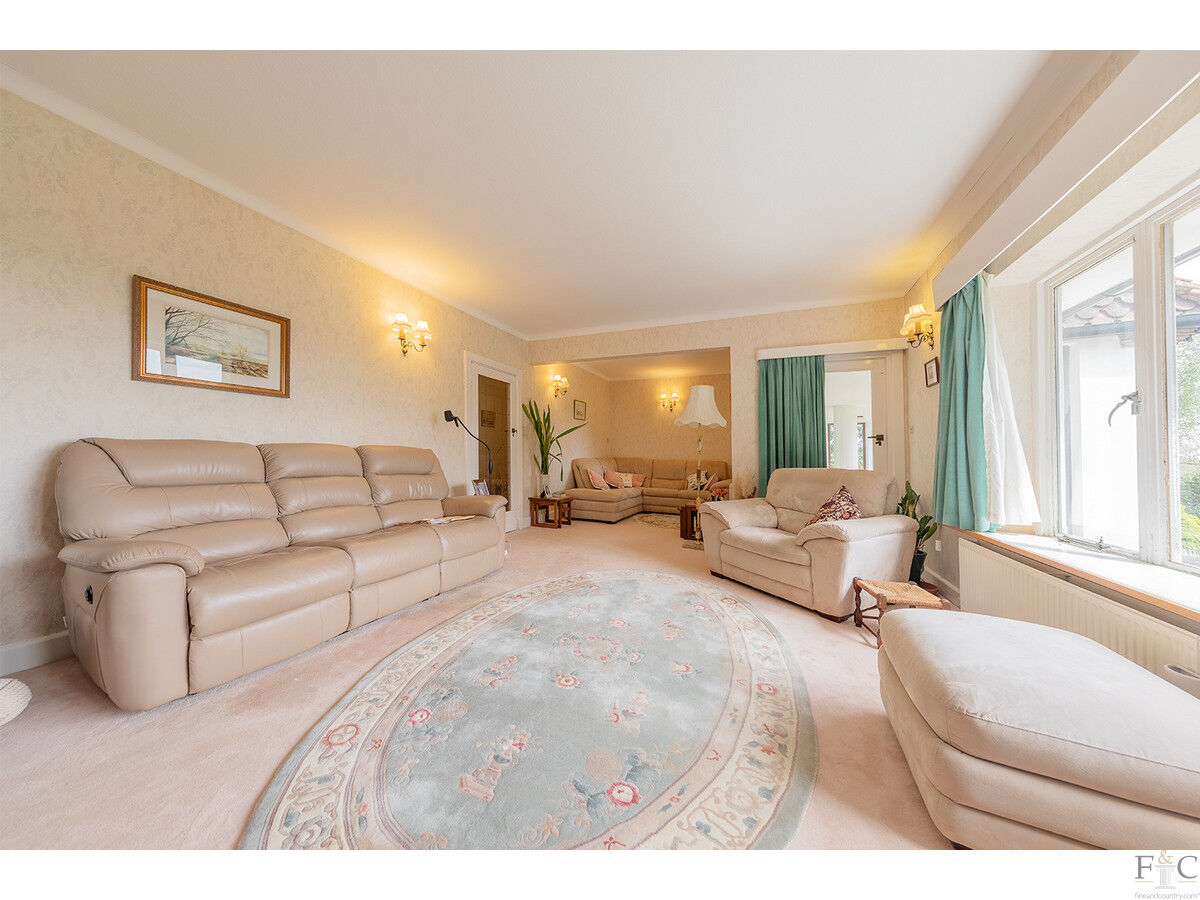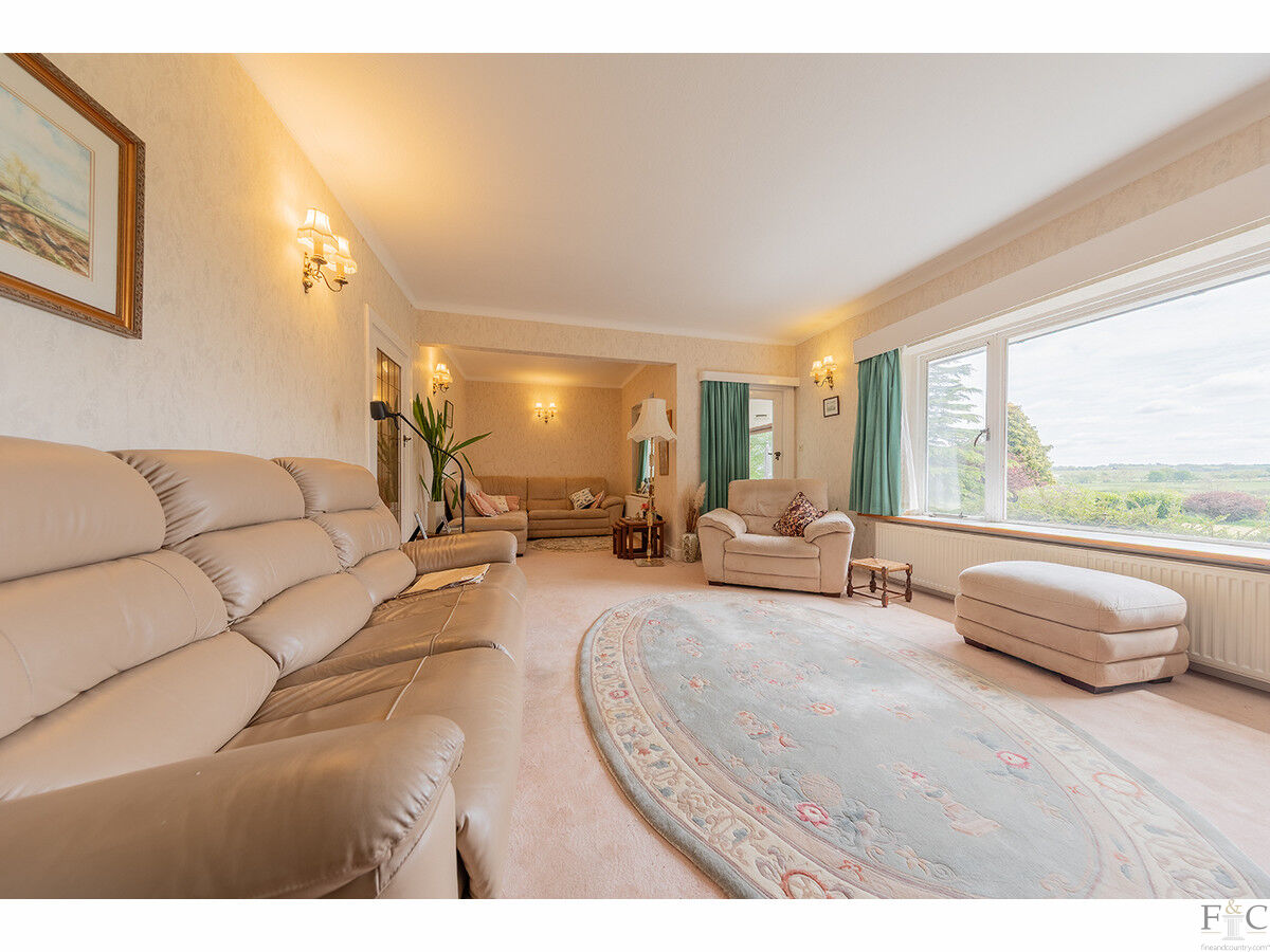 The journey begins through a welcoming porch and boot room, before flowing into an elegant hallway that guides you through the home. To one side, a grand drawing room framed by a sweeping picture window drinks in rolling vistas of open countryside – a living canvas that changes with the seasons.