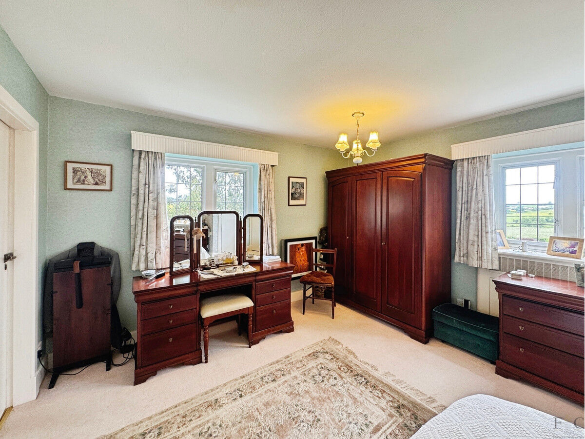 The gentle return staircase leads to a beautifully lit landing and four generous bedrooms. The principal suite enjoys a large en-suite bathroom and elevated views across uninterrupted countryside – the perfect view to wake up to.