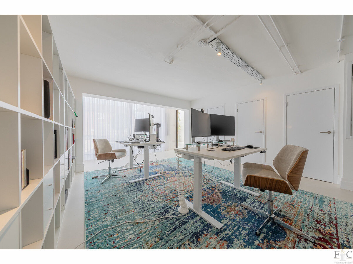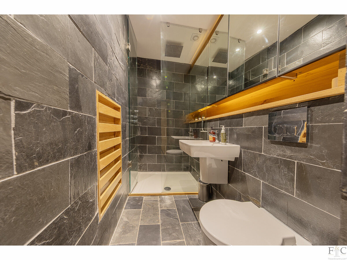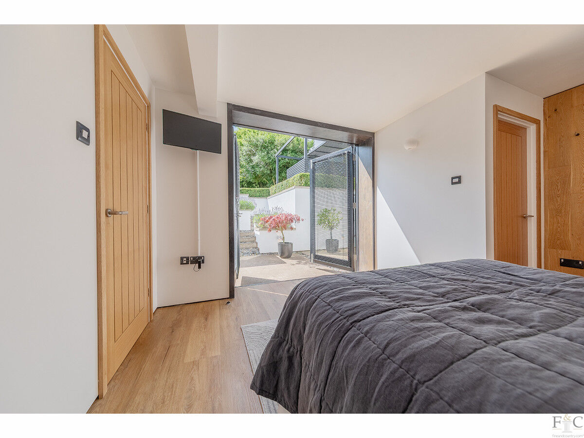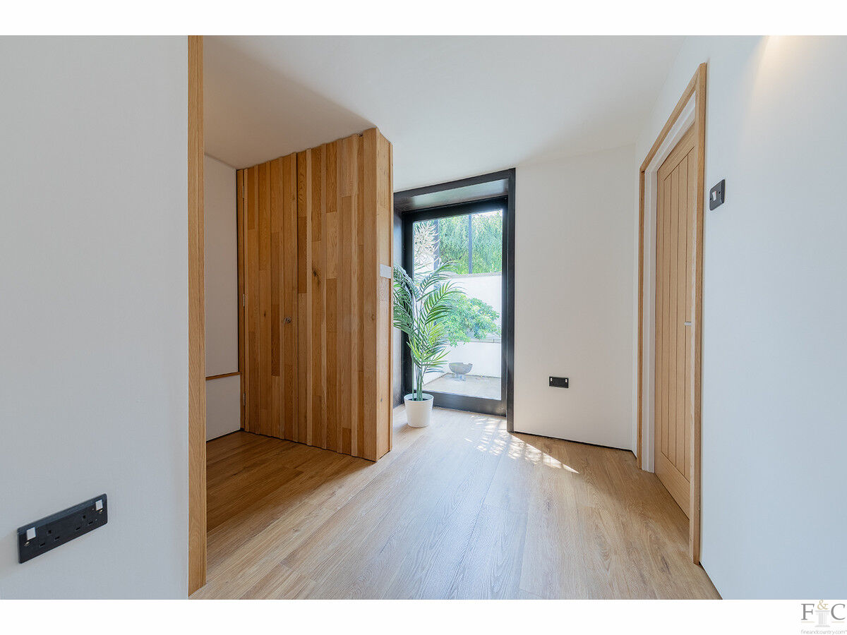 A separate studio, currently arranged as a home office on one side and a gym on the other, enjoys independent access from the courtyard. The space works brilliantly as it is, offering superb flexibility for home workers or those needing dedicated creative or fitness space. Combined with the adjacent ground-floor bedroom, complete with a newly refitted shower room and access to a private sunken patio — it could also serve as an independent annexe (subject to consent) or a luxurious guest suite.