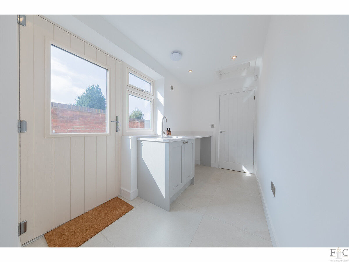 To the side of the built-in cupboards a door allows access to the utility room, plant room housing the boiler, additional storage and back door entrance. The utility room has a sink unit and plumbing for a washing machine and vented tumble dryer.