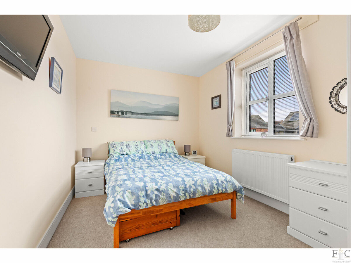 This attractive house benefits from greatly reduced traffic because of its gated entrance and no through road position. It is presented with a well-manicured front garden and generous drive that leads to the integral double garage. This open aspect, without hedges or fences, is a major feature of the house and highlights the significant width of the property, allowing easy access to the covered front porch entrance. There is ample space for further vehicles on the drive and to add a softer feature to the landscaping, shrubs and border plants have been added to enhance height and define the boundaries. There is a gate on either side, with a path leading to the rear, back garden.