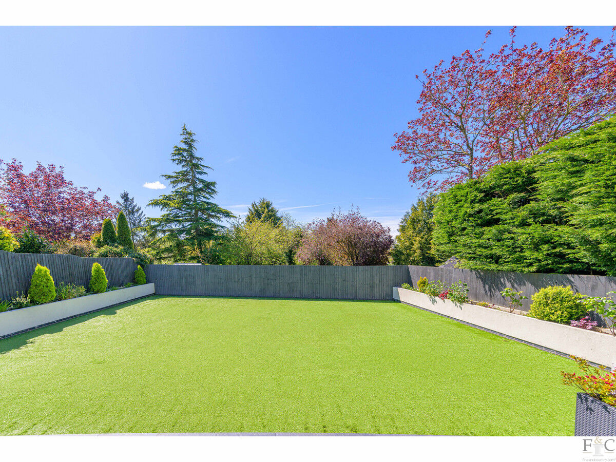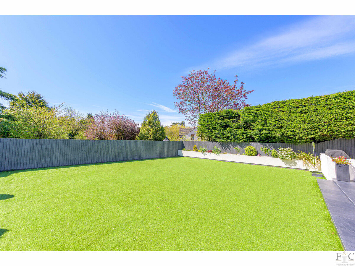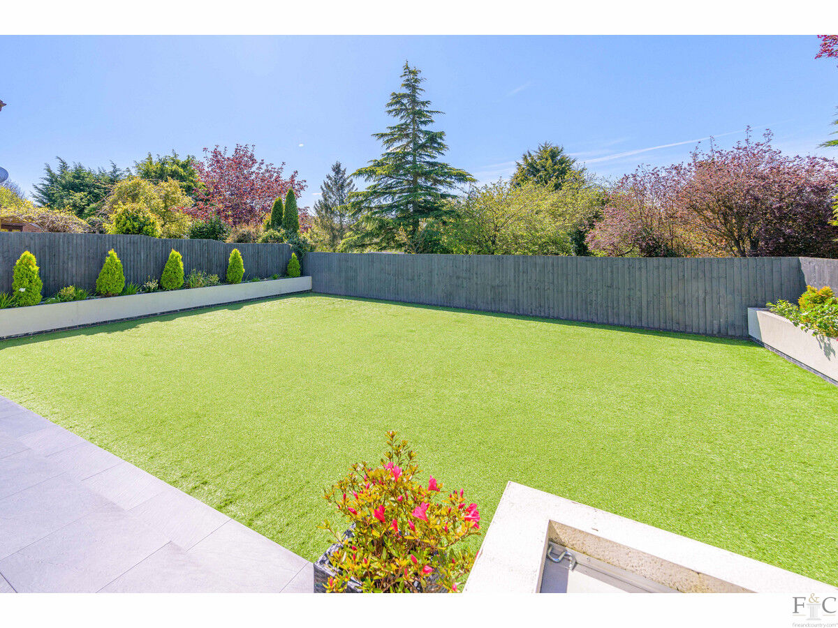 The added benefit of the open plan arrangement within these reception room is that the garden and paved patio areas are reached by pushing back the bi-folding doors that essentially form an easily movable wall of glass. This property is beautifully designed to change with requirements so whether you are catering on a large or small scale, enjoying a formal dinner party or a quieter meal for a few, this arrangement of space enables versatility and use of the raised patio area in the garden. The garden has been purposefully designed to need low maintenance. It is bordered by fences, shrubbery and raised beds, which surround an artificial lawn.