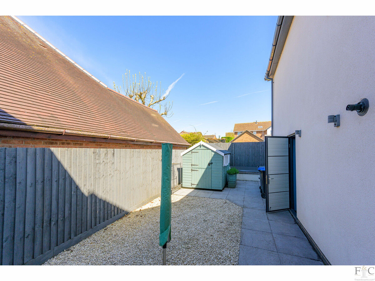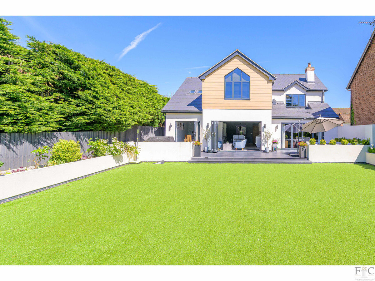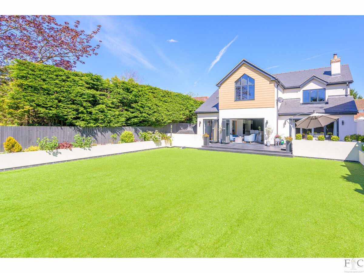 The added benefit of the open plan arrangement within these reception room is that the garden and paved patio areas are reached by pushing back the bi-folding doors that essentially form an easily movable wall of glass. This property is beautifully designed to change with requirements so whether you are catering on a large or small scale, enjoying a formal dinner party or a quieter meal for a few, this arrangement of space enables versatility and use of the raised patio area in the garden. The garden has been purposefully designed to need low maintenance. It is bordered by fences, shrubbery and raised beds, which surround an artificial lawn.