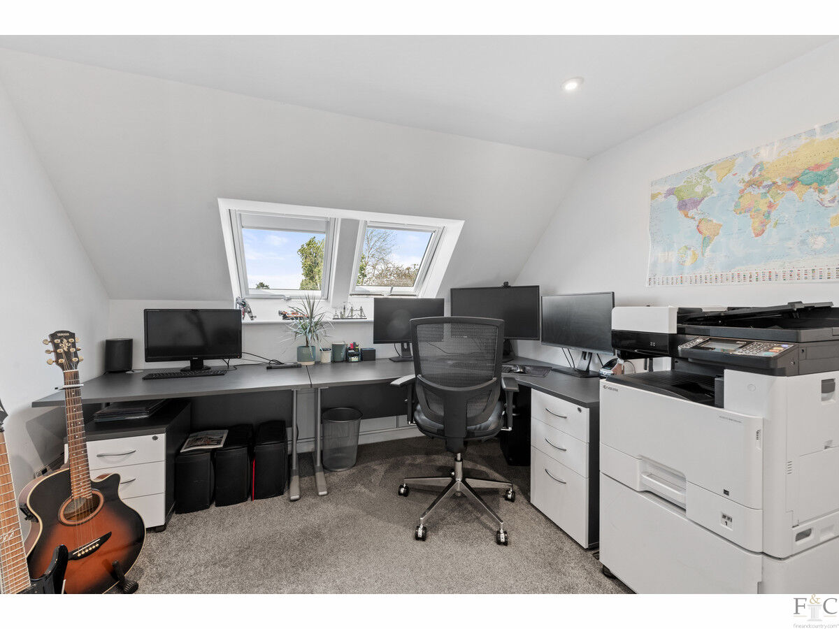 There are clever design features within this property that maximise space and flexibility of purpose. The last room demonstrates this. Tucked away on the second floor, a room accessed by its own flight of stairs provides a private retreat, ideal for a study or indeed a fifth bedroom with extensive hidden storage.