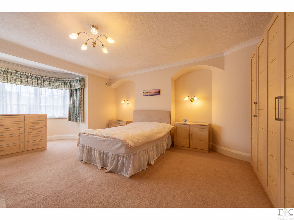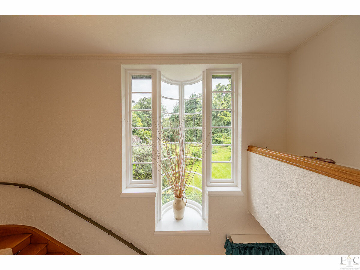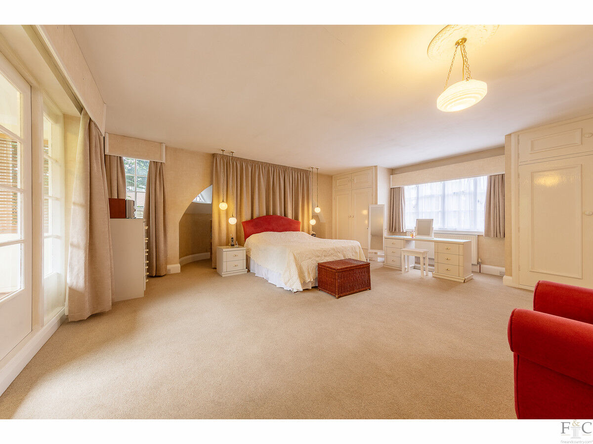 Ascending the beautiful curved staircase, you reach the first-floor landing, where a large picture window offers serene garden views, bathing the area in natural light. This floor houses five double bedrooms, each thoughtfully designed to offer comfort and style.