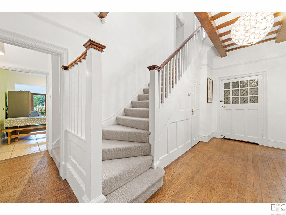 Original and restored period features including fireplaces, doors, stained glass windows and tiled floors