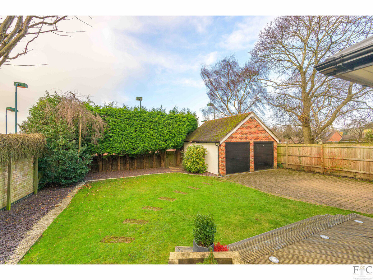 Outside, the enchanting garden features a patio illuminated by spotlights, offering an inviting space for entertaining or indulging in a BBQ. Towering trees enhance privacy, while direct access to the tennis club through the gate at the rear adds a unique and desirable dimension to this already impressive property.
