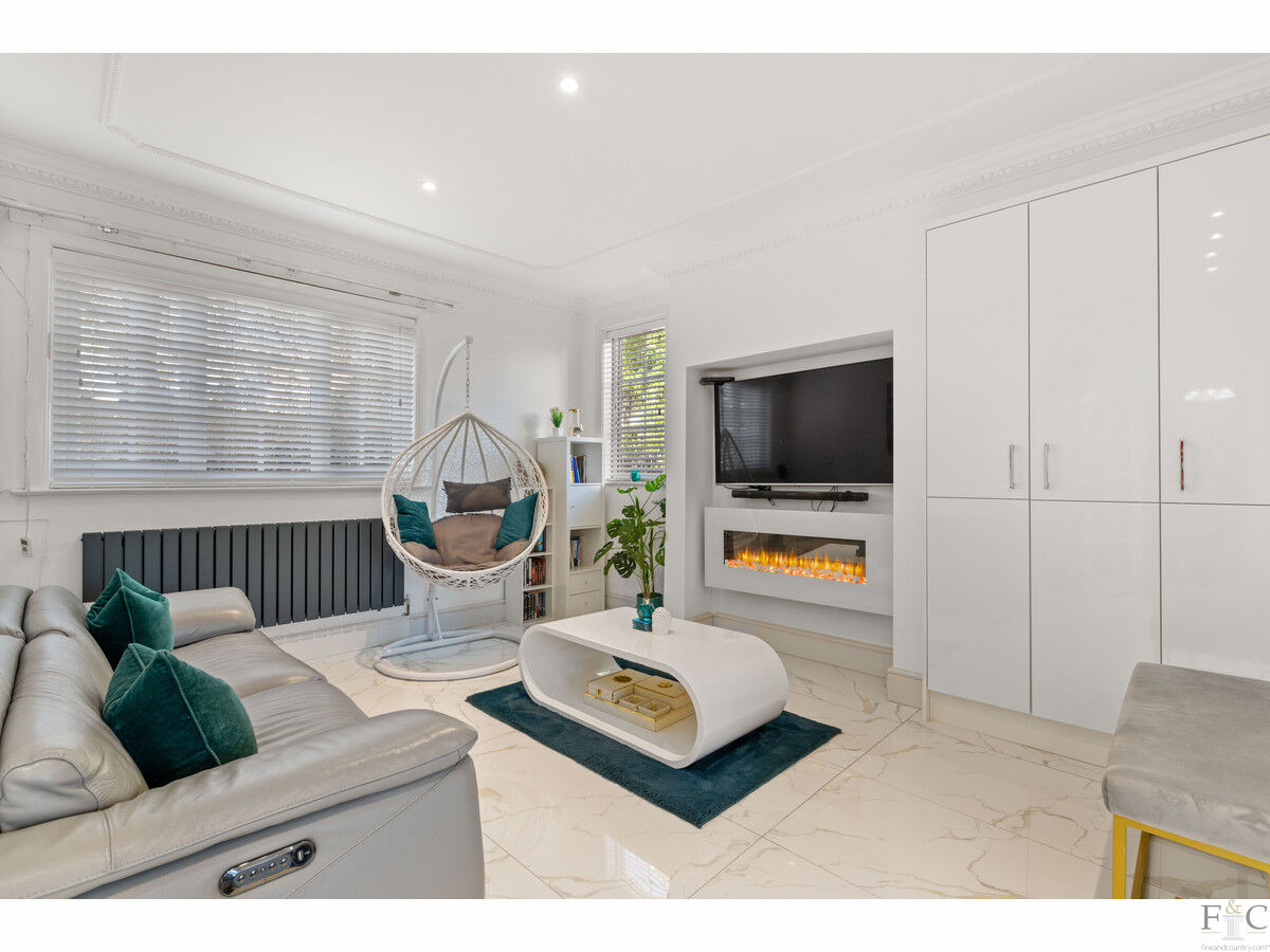 A second formal reception room exudes grandeur with its ornate fireplace, soft carpet underfoot, and elegant glazed doors leading to a sun-drenched conservatory—an ideal sanctuary for morning coffees or evening wind-downs.
