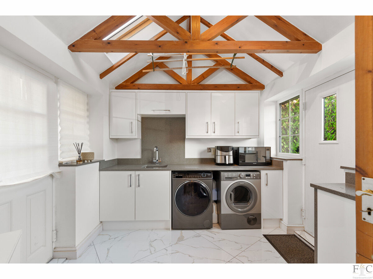 Outside, the home continues to impress. A detached 45ft workshop, complete with solar panels, presents myriad possibilities—be it as a home office, gym, studio, or business base. Further, a split-level barn with a garage and separate room offers scope for conversion into a self-contained annexe (subject to planning).