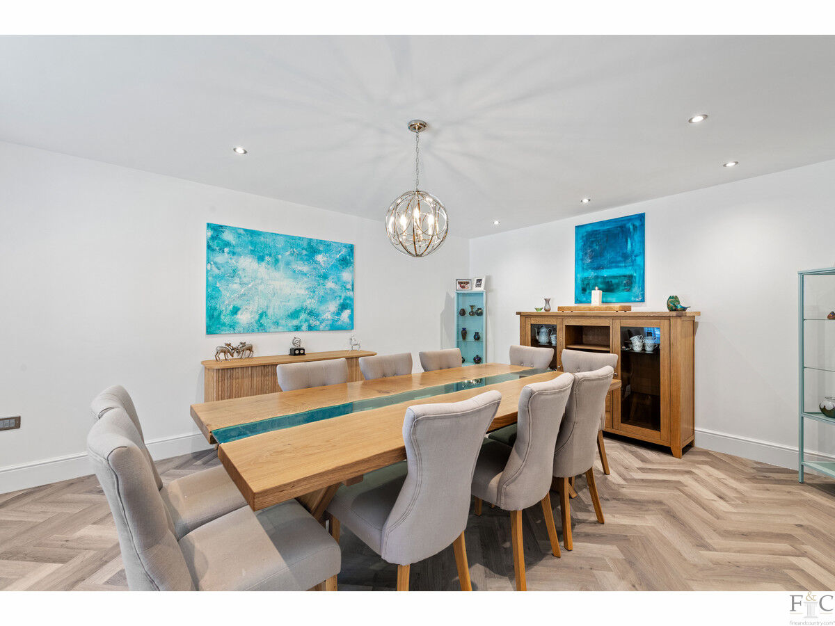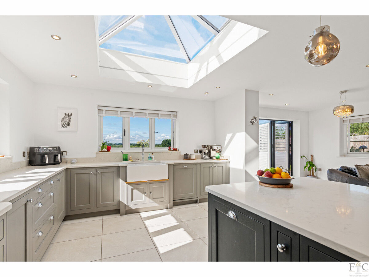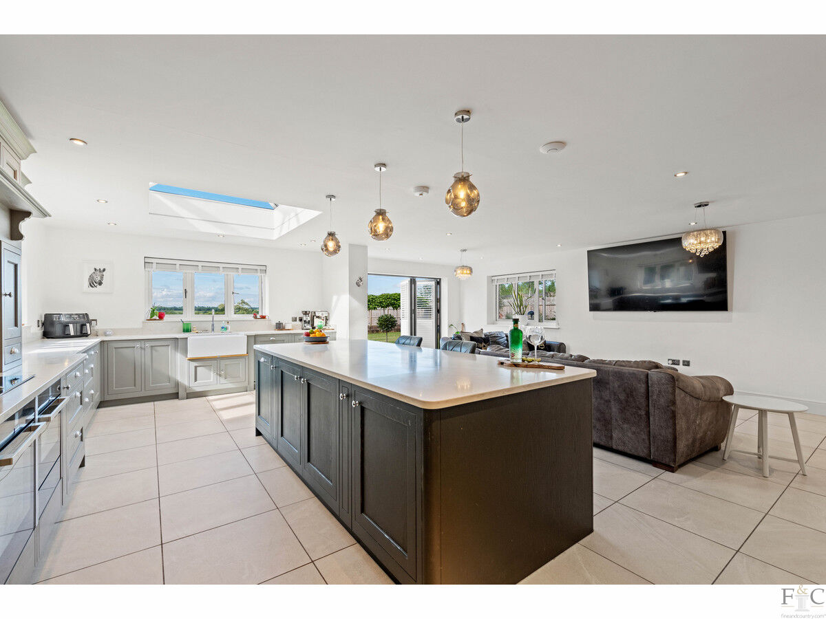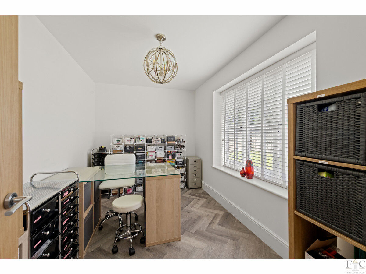 Originally built in 2021, and offered to the market with no upward chain, The Paddocks is a prestigious five bedroom - three with an ensuite - detached property in a beautiful location overlooking open countryside. It has a generous open plan kitchen dining area, utility room, boot room, study, two separate reception rooms, an integrated double garage, cloakroom and a separate family bathroom. It has been designed to befittingly match the plot of one and a half acres of land it complements and is filled with wonderful features that add immensely to the value and appeal of the residence. Being spaciously designed, luxuriously fitted and interiorly decorated with a contemporary palette of neutral colours and textured materials, the opportunity to own this house and make it become ‘home’, is surely desirable for any seeking a premium property with beautiful location.