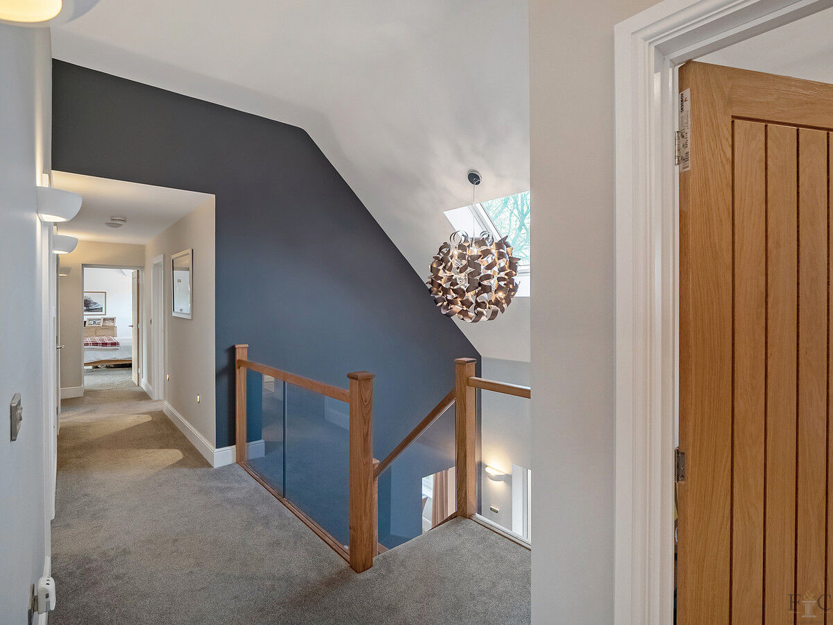 The galleried landing is a truly delightful feature of this property and as many of the light fittings are a purchasable option, the artistic fixture presently gracing the space near the Velux window has an option to remain.