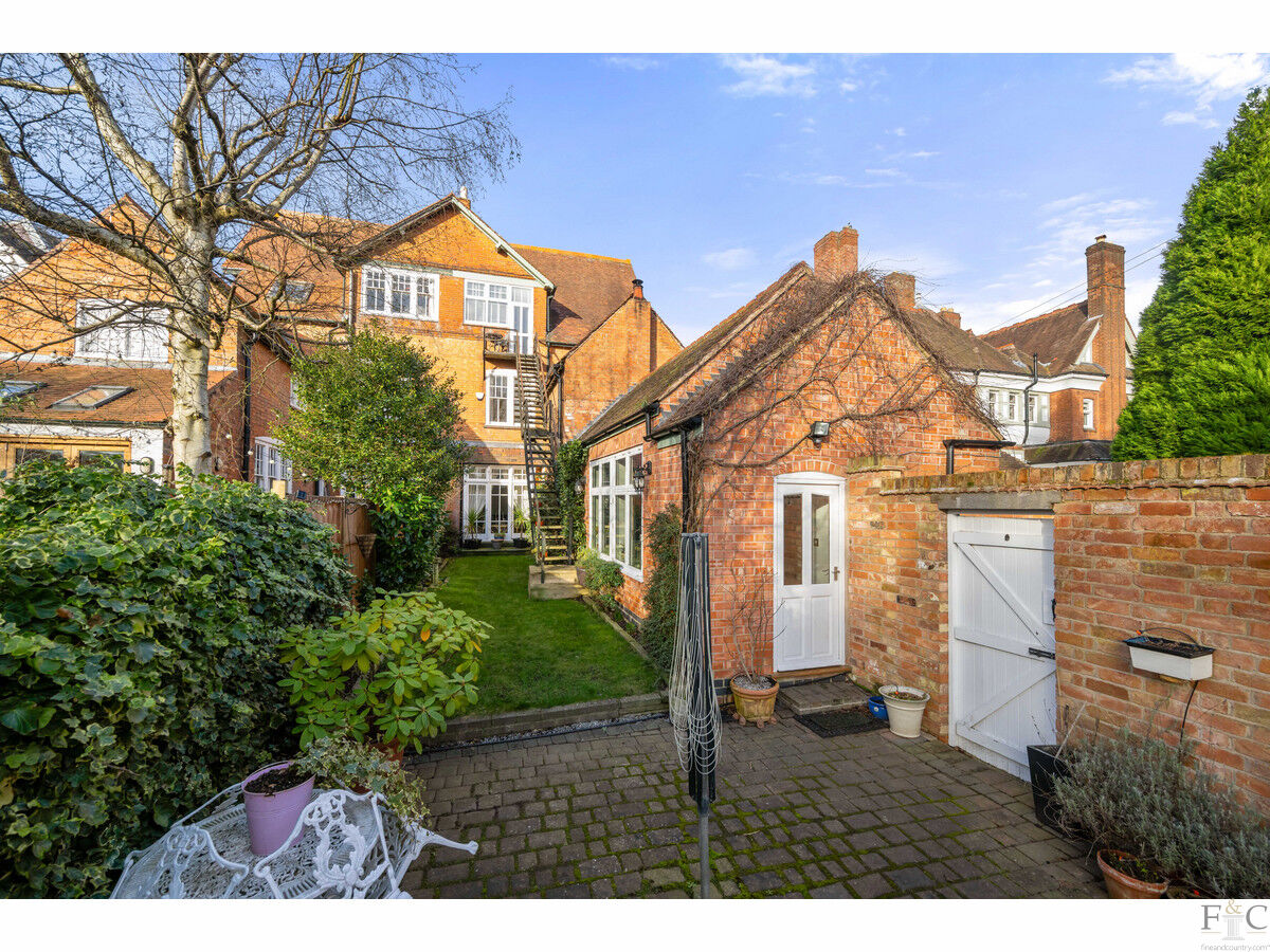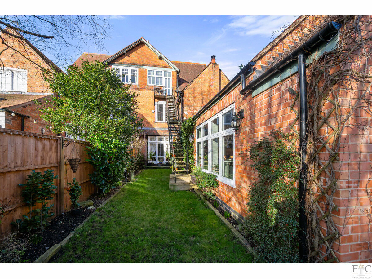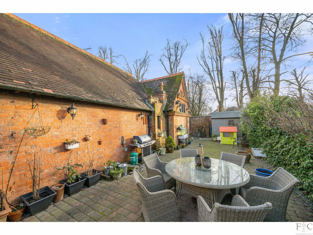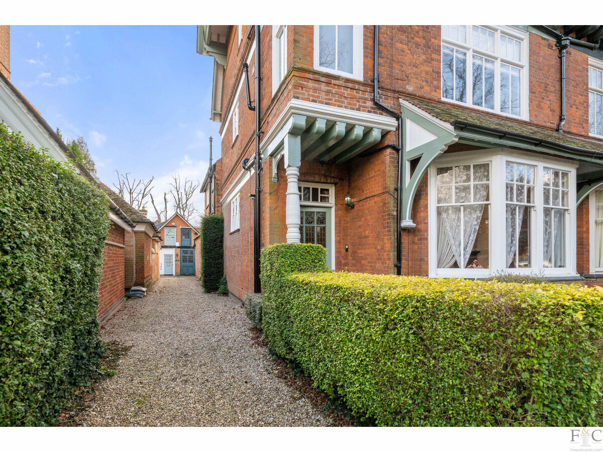The property enjoys a front forecourt with mature flower beds, a shared gravel driveway leading to a former coach house with car standing to the front. Importantly, this coach house holds planning permission (Leicester City Council Planning application number 20210470) for conversion into a two-bedroom mews house. Original features like fireplaces, ceiling coving, and oak flooring contribute to the property's character.