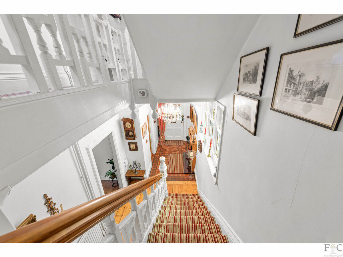 Noteworthy elements include a cellar ready for conversion, an original arched window on the spacious second-floor landing, and a balcony accessed from bedroom four. The property is well-connected, with Knighton Drive offering proximity to the city, cultural quarters, and the mainline railway station. Local shopping at Queens Road, Allandale Road, and Francis Street, coupled with excellent state and private schooling options, adds to the appeal of this magnificent residence.