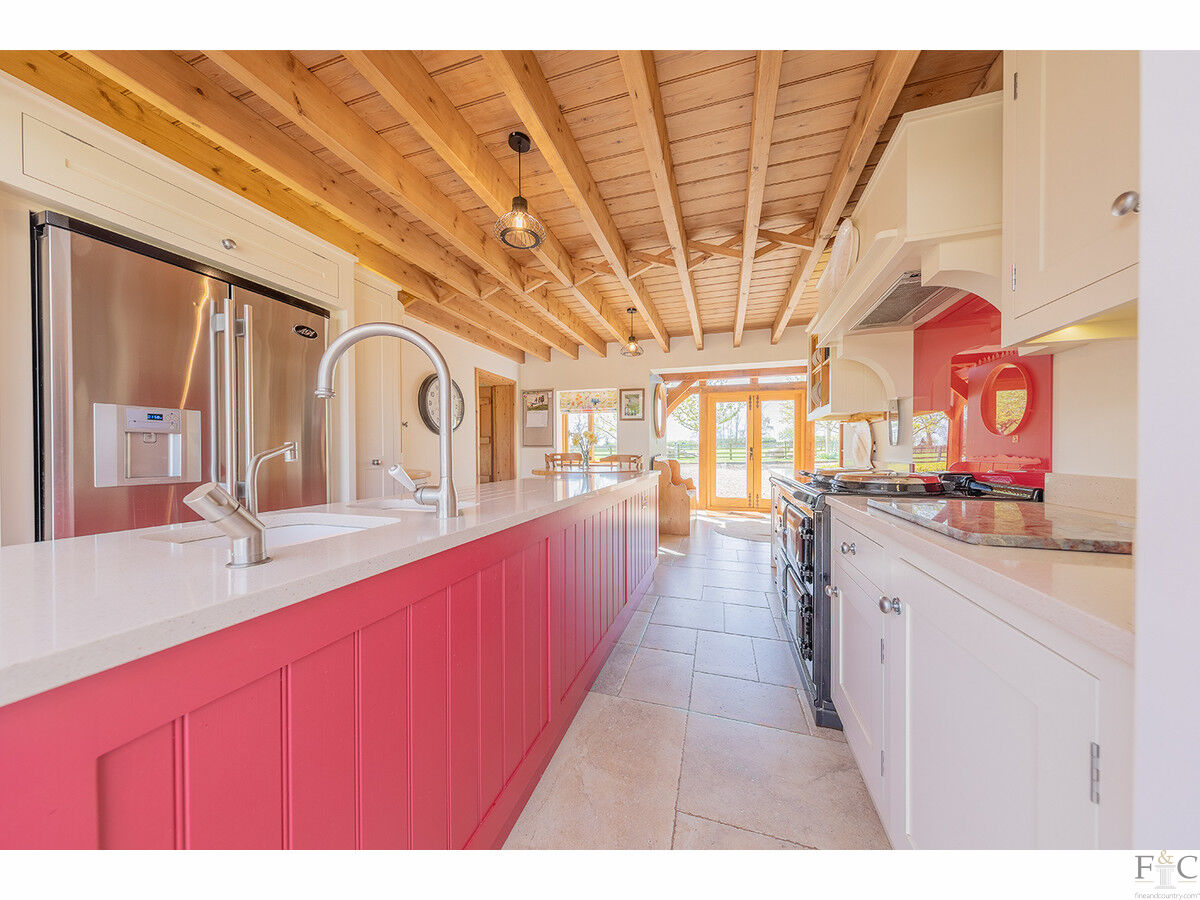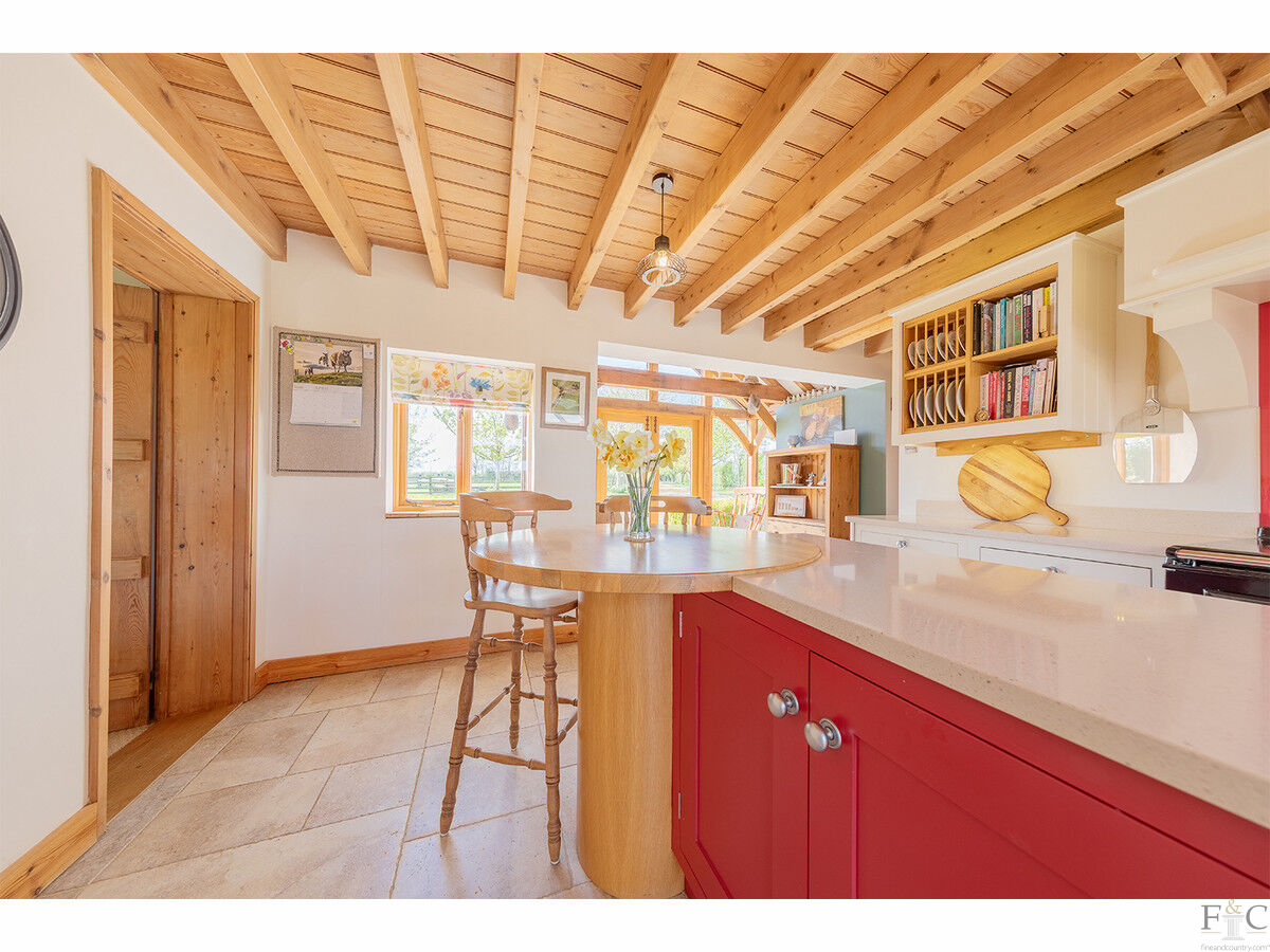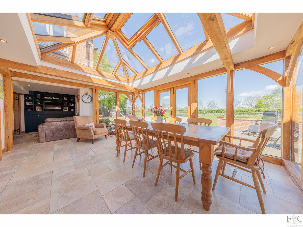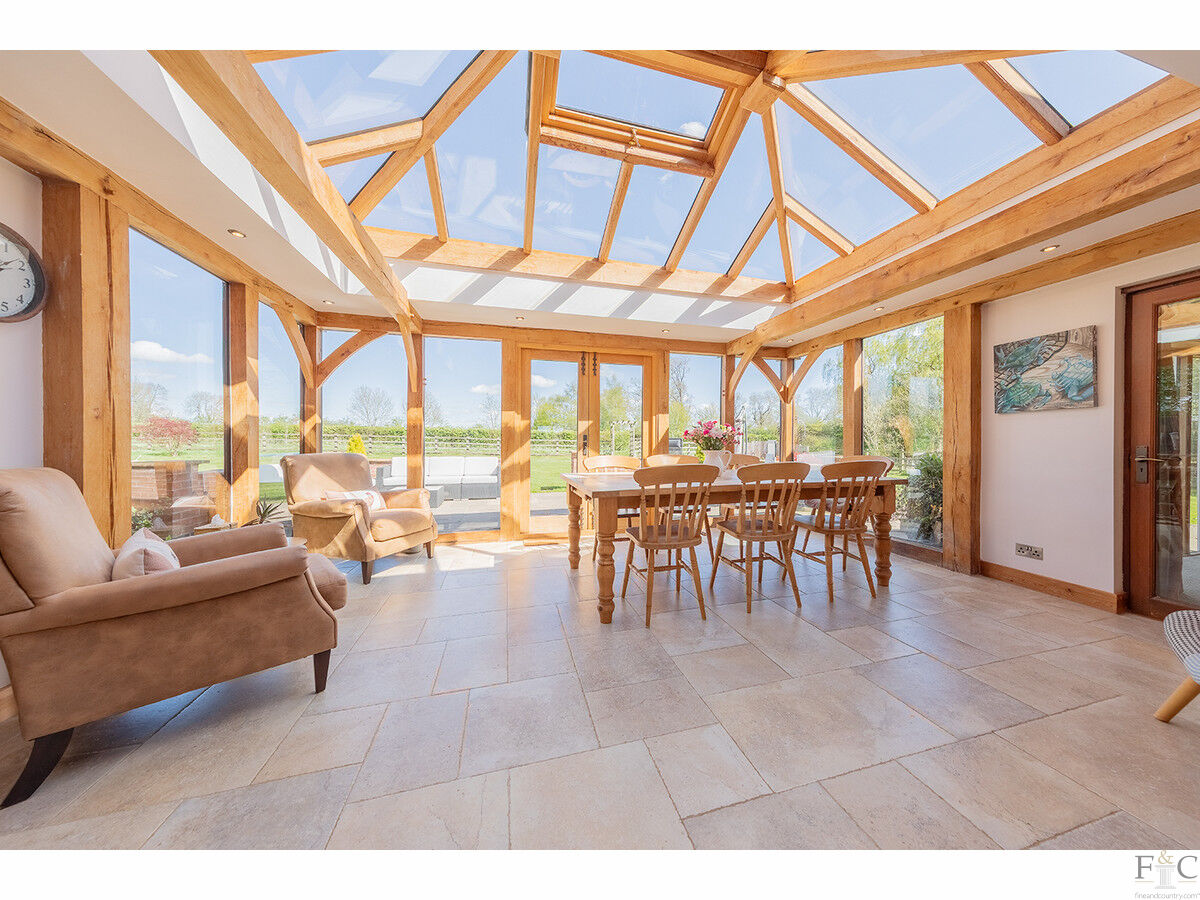 The 4-bedroom main residence has been expanded to the south, east, and west, incorporating an oak-framed entrance hall, a spacious living kitchen, and a light-filled garden room that brings the outside in. A separate 2-bedroom annex provides flexible accommodation for guests, multigenerational living, or income potential, while a dedicated home office/gym adds to the property’s versatility.