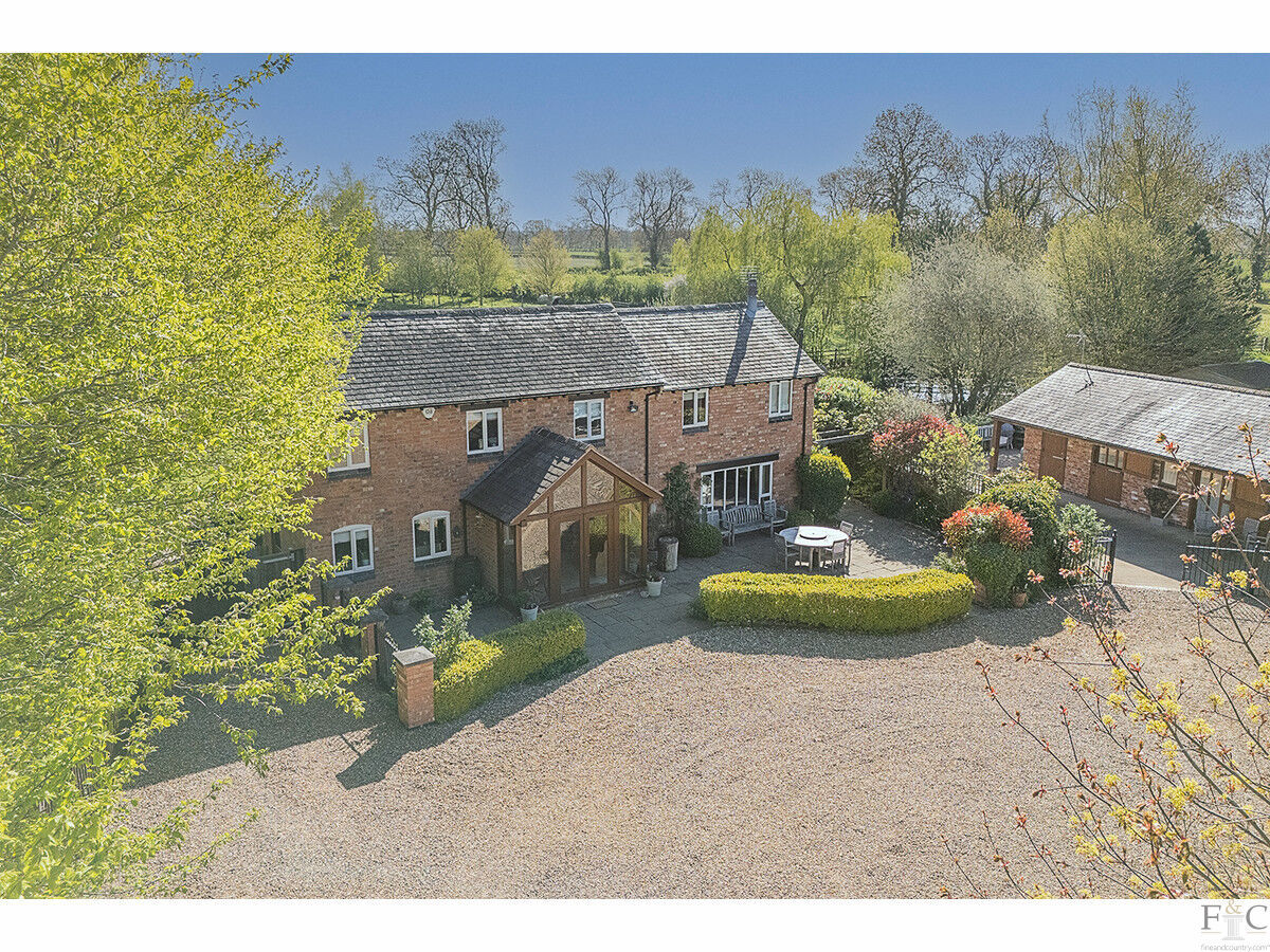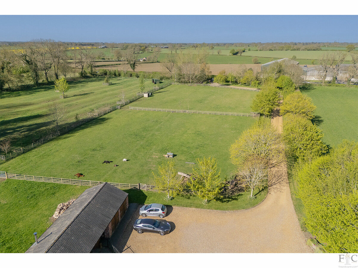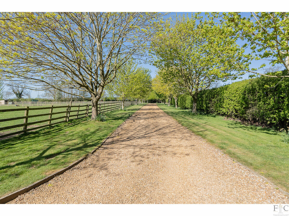 The approach to the house is via double electric gates and high brick entrance pillars. The long gravel driveway, which is flanked by an avenue of Field Maples, sweeping to the left of the paddock, the driveway culminates in a generous gravelled area to the front of the house, a York stone terrace providing an alfresco dining area