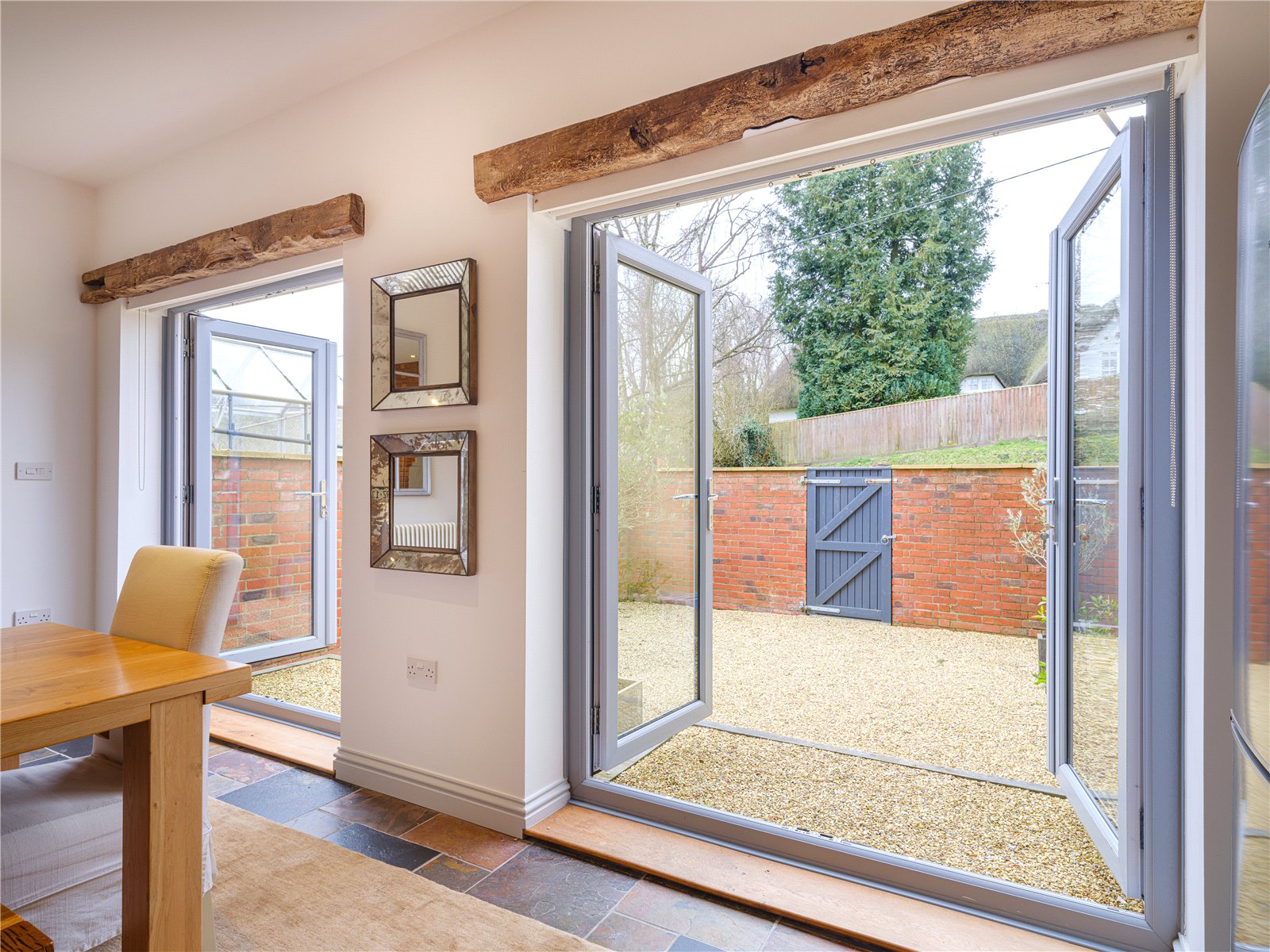 Sensitively converted in 2010 The Old Malthouse now offers a home wonderfully blending period and historically intriguing features with the needs of modern life. Filled with light and lofty high ceilings, the sitting room with its exposed beams and brickwork has a log burner for those cosy winter evenings but throw open the French doors to the garden in the summer months, whilst the kitchen is a wonderful space for entertaining family and friends who can spill out into the pretty private courtyard. There are 2 double bedrooms, both with windows over the pretty and private garden and Velux windows to again maximise light, the 3rd bedroom could also make a lovely home office. The main bedroom leads down to a large en-suite/dressing room, with a very well appointed bathroom with separate bath and walk in shower serving the other 2 bedrooms. A large utility room completes the accommodation.