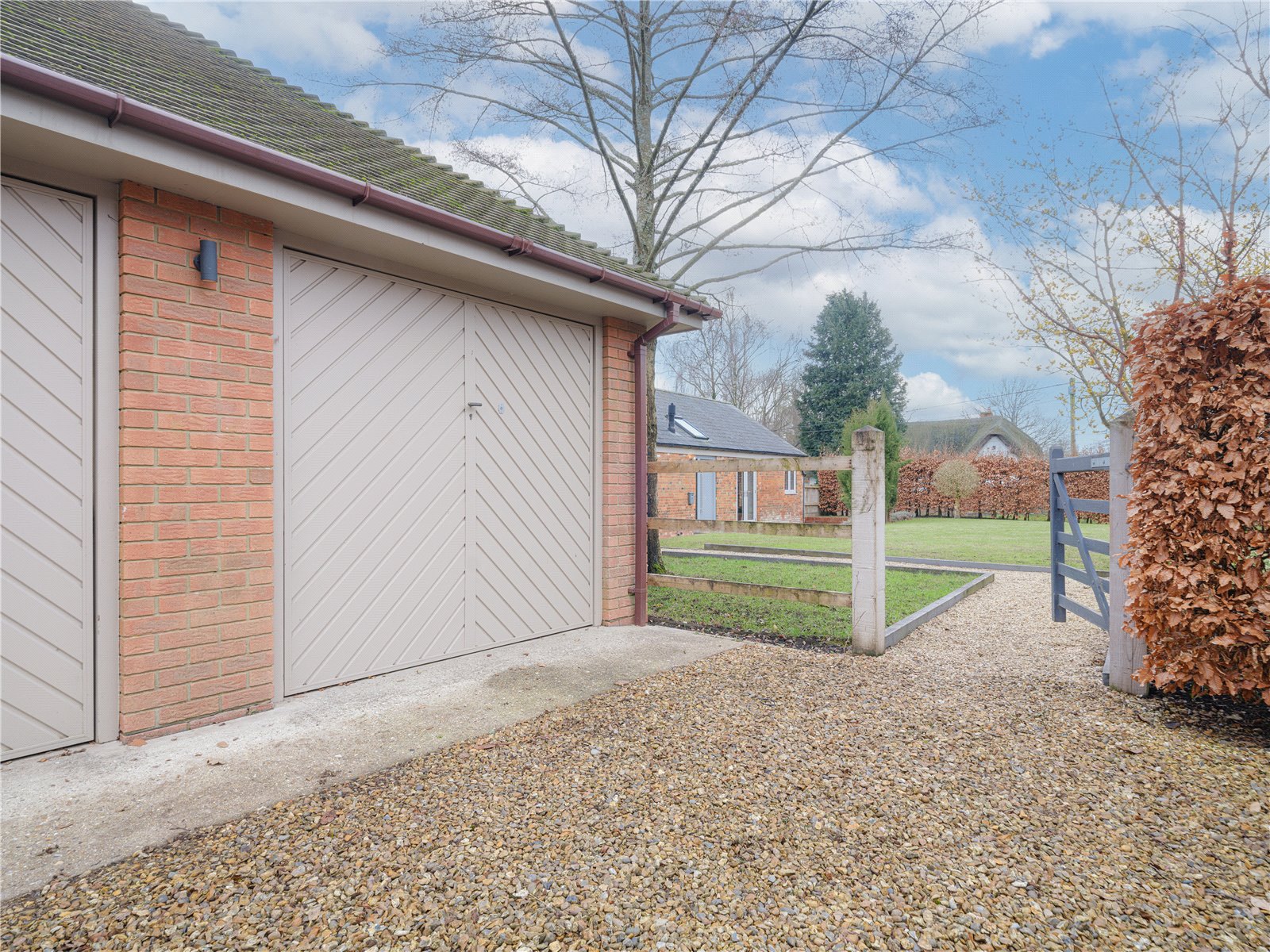 Sitting above the high street, The Old Malthouse is accessed by a private road to parking for 2 cars and a double garage with electric doors, the garden is level and mainly laid to lawn with a gravel path leading from the parking to the front door. The garden is surrounded by beech hedging providing privacy. Accessed from the kitchen is a pretty and private courtyard with pedestrian access to the high street.